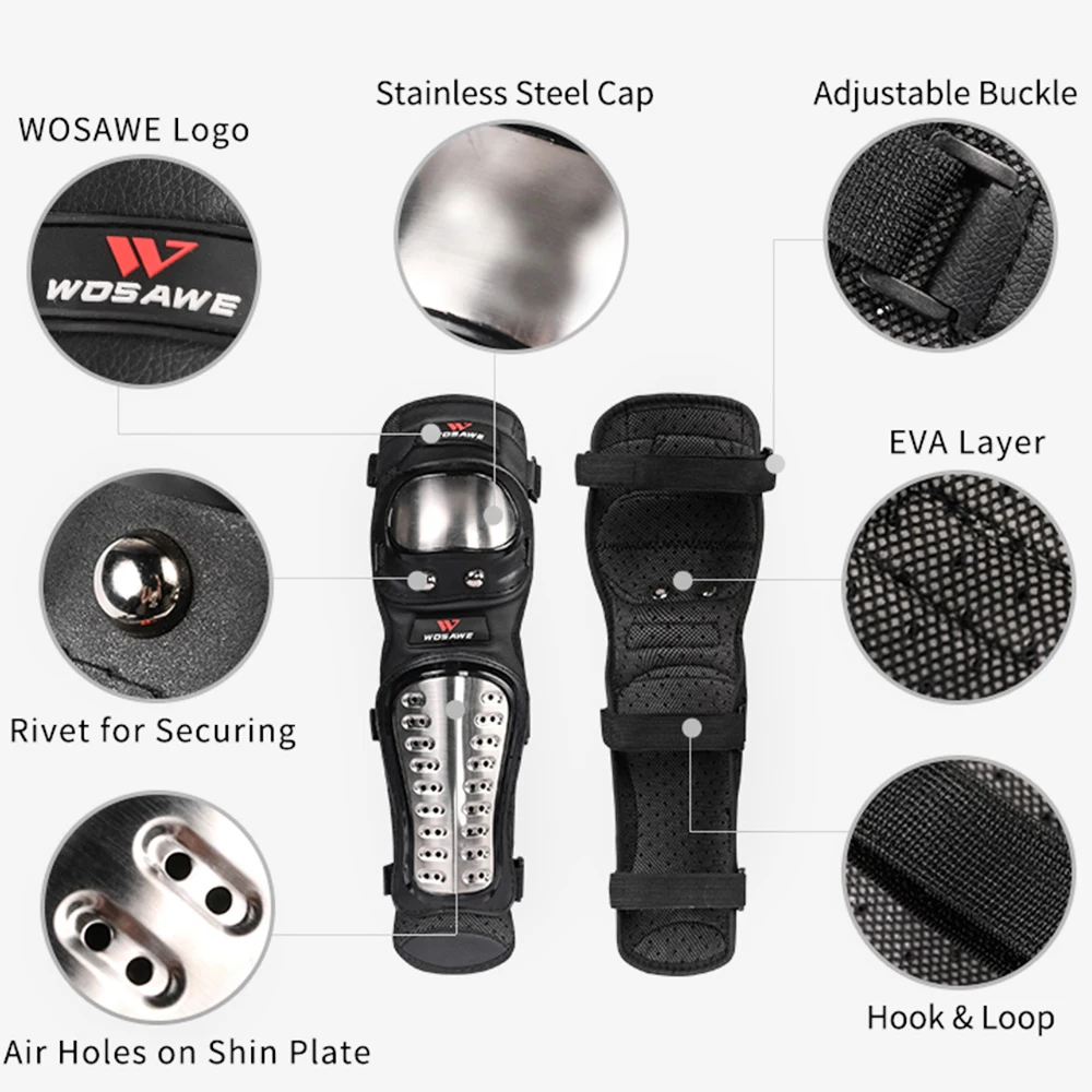 Наколенники WOSAWE наколенники для мотоциклистов из нержавеющей стали для мотокросса, защитная Экипировка для взрослых