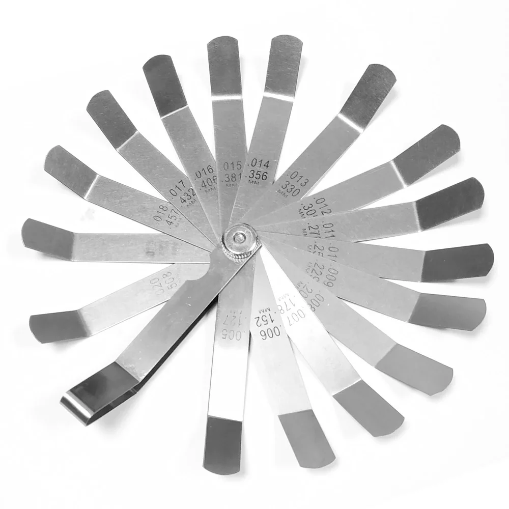 Товары поставляются в полиэтиленовом пакете. Продукция имеет идеальную форму. Пожалуйста, обратите внимание, если вам нужны очень тонкие щупы (толщина) или от 0,1 мм до 1 мм! Этот товар имеет размеры США (дюймы) и ЕС мм! Чернильная печать на щупе не такая хорошая, как я надевал. Поэтому я сам напишу замеры на спине.