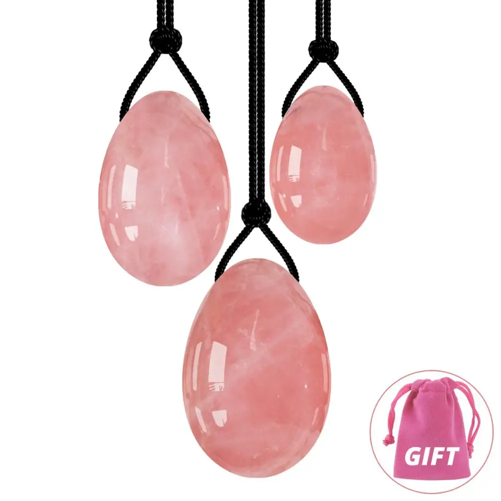 Розовый кварц Yoni яйцо натуральный Кристальный массаж инструмент для Кегеля упражнения Вагинальные мышцы подтяжки просверленные яйца Yoni Массажный мяч