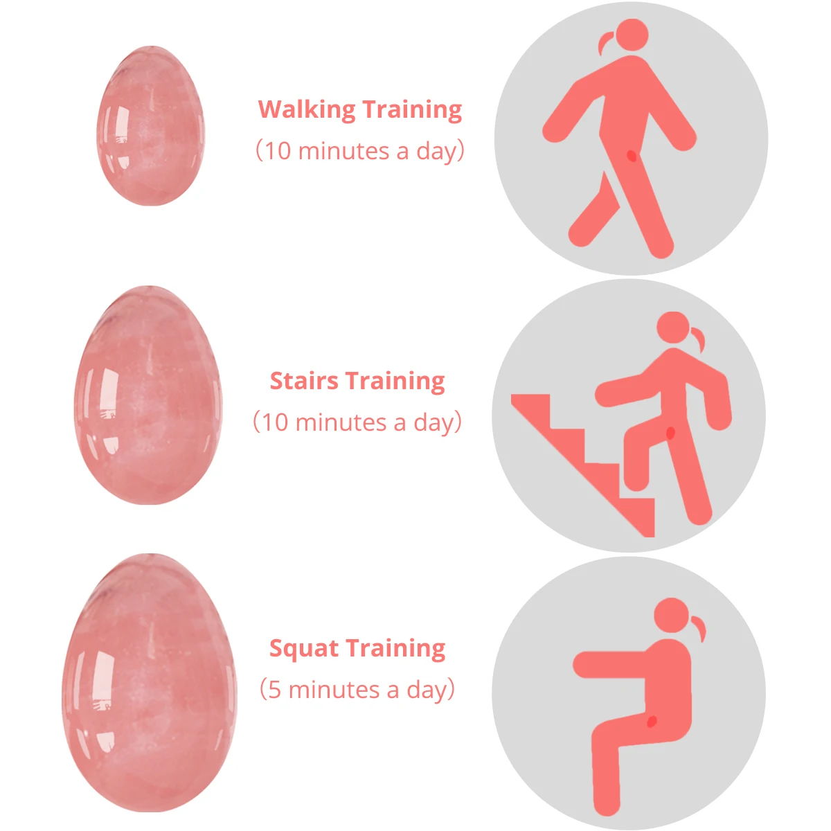 2. И после этого, так как мышцы будут тренироваться и удерживать большое яйцо будет простым, вы можете перейти на тренировочную встречу со средним яйцом, а затем с самым маленьким. Вставьте яйцо и сожмите мышцы, которые вы почувствуете по мере движения яйца. Это поднимает тазовый пол. Удерживайте на десять, а затем Расслабьтесь на десять.