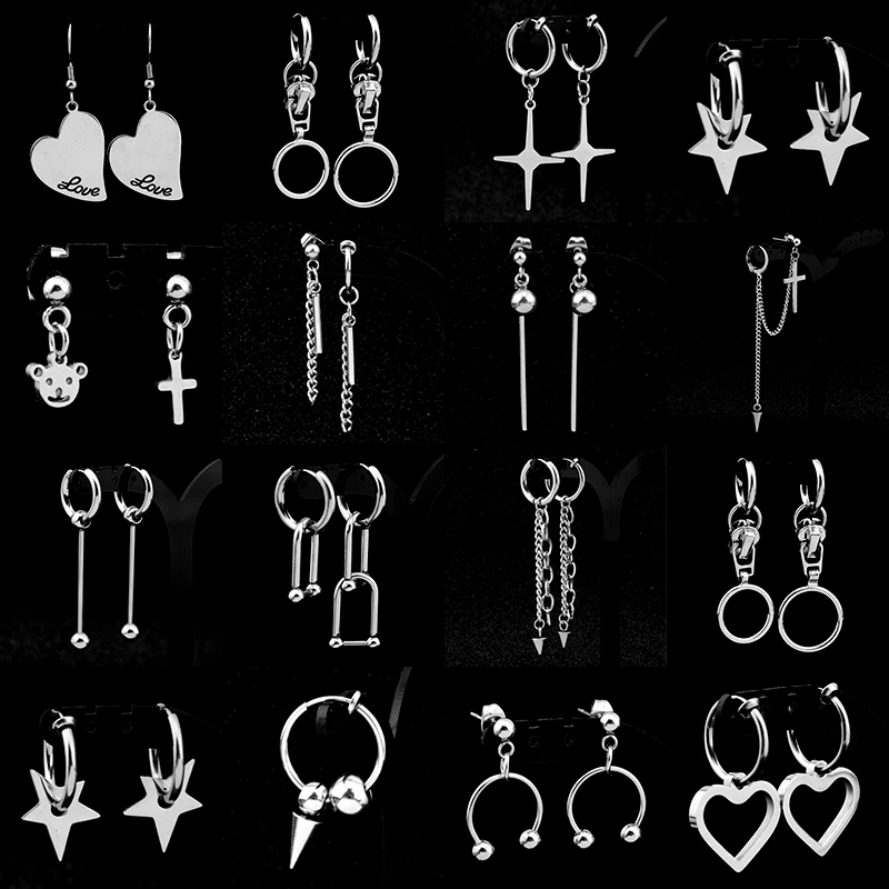 Серьги-кольца SOHOT мужские многослойные, висячие украшения на молнии с подвесками в форме сердца, звезд, медведя, висячие украшения для вечеринки в стиле унисекс, металл, рок, панк
