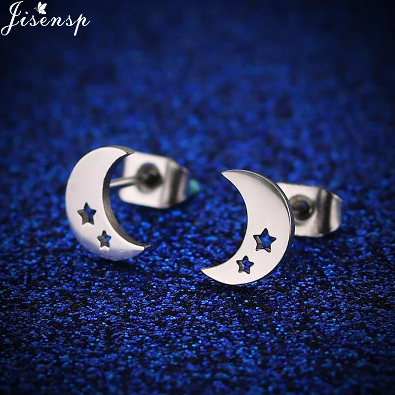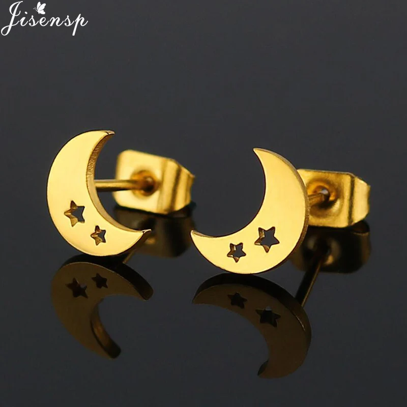Серьги-гвоздики из нержавеющей стали для женщин и детей, черные минималистичные серьги круглой формы, звезды, месяца, Креста, ювелирные изделия 2020, аксессуары