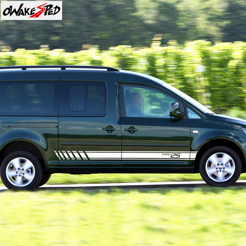 Версия 25, стильные автомобильные спортивные полосы, виниловые наклейки, автомобильные двери, боковая юбка, декоративные наклейки для Volkswagen Caddy, внешние аксессуары