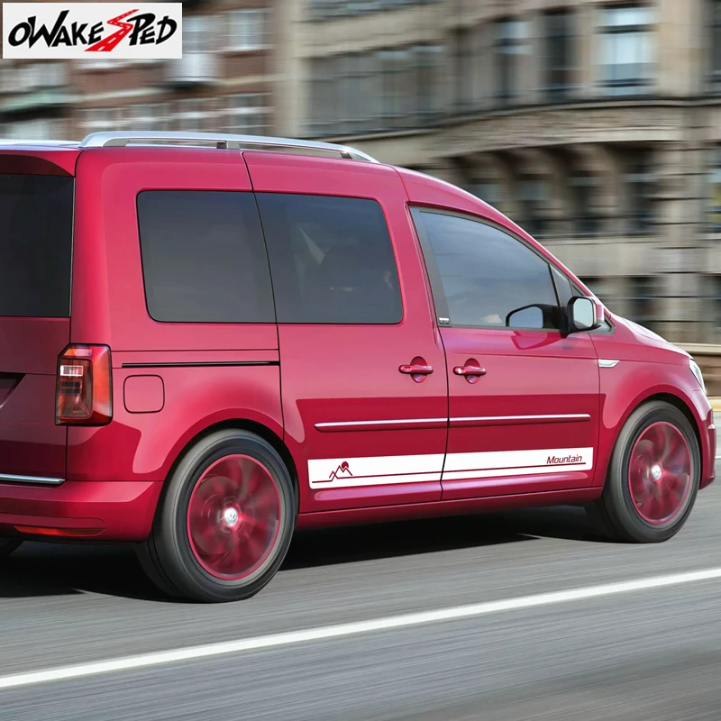 Горные солнечные графические Наклейки на кузов автомобиля, декоративные наклейки на дверь, боковую юбку, виниловые наклейки для Volkswagen Caddy Sport Strieps Styling