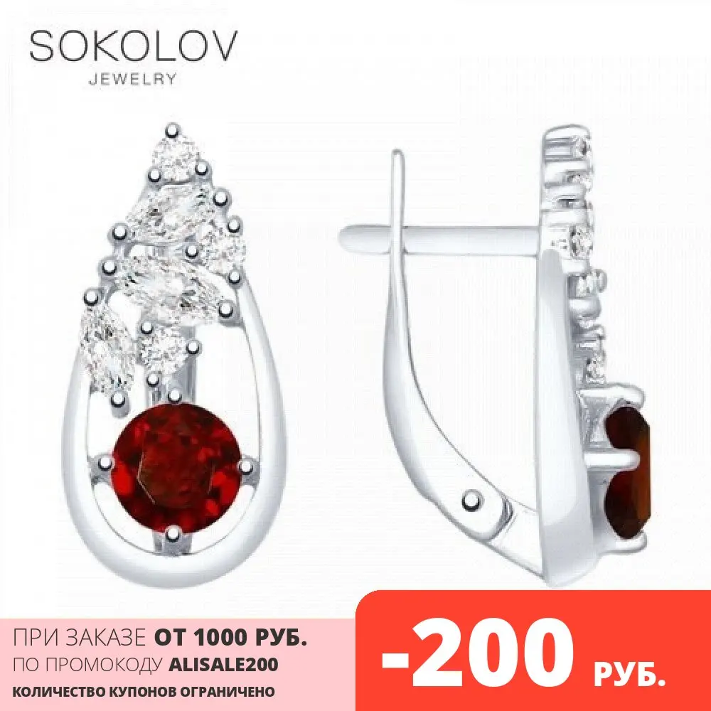 Серьги SOKOLOV из серебра с гранатами и фианитами, Серебро, 925, Женские, Серьги 2021 тренд, Оригинальная продукция
