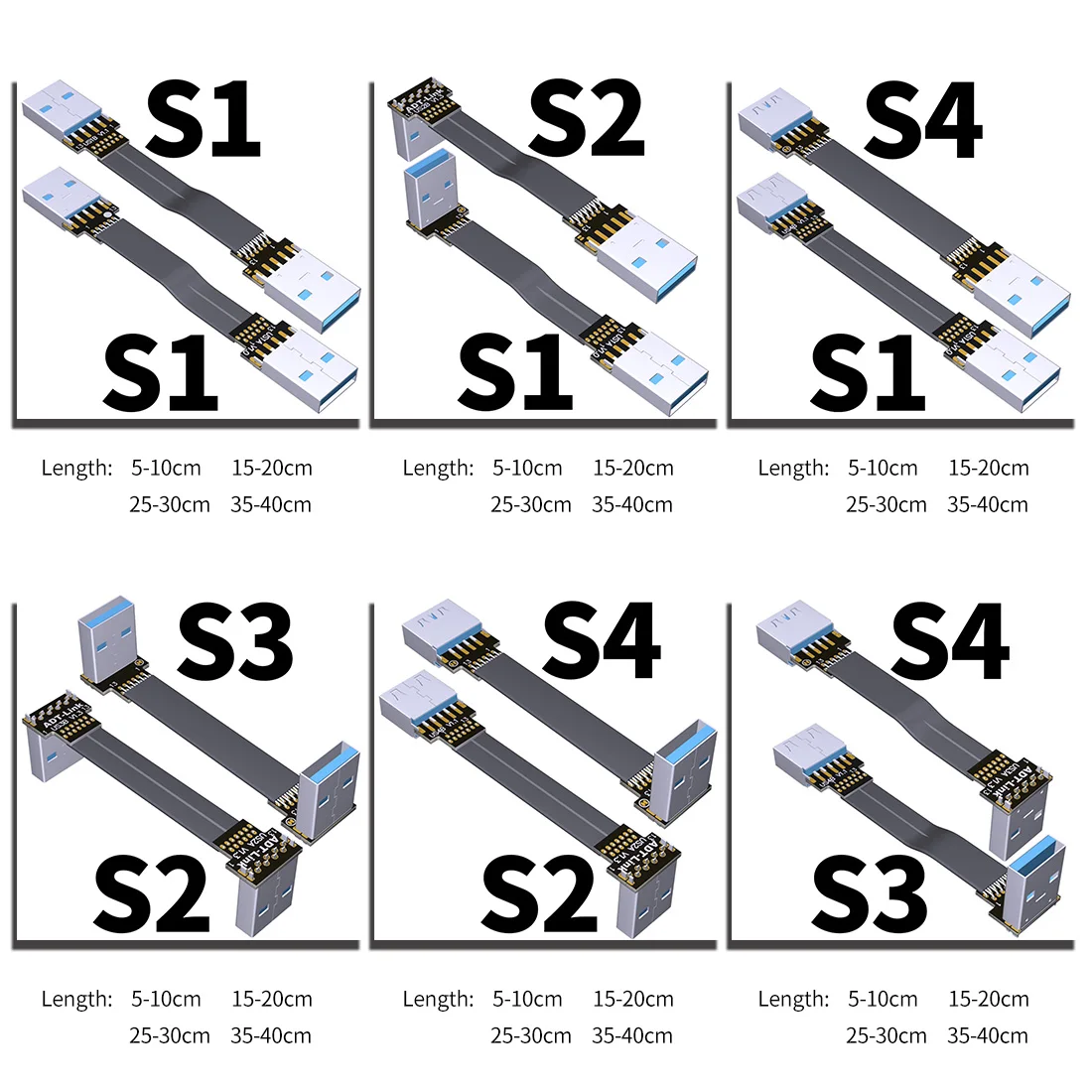 S1-USB-A плоское крепление; S2-USB-A поворот; S3-USB-A поворот; S4-USB-A женский