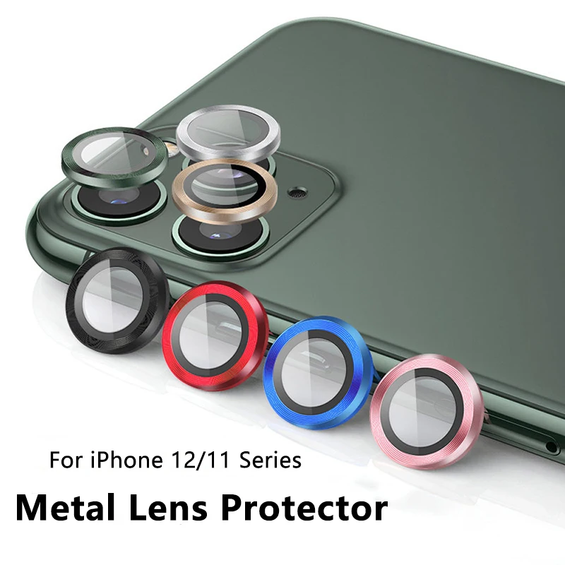 Защитное стекло 3D для камеры iPhone 12 Mini 11 Pro Max, закаленное стекло с полным покрытием, металлическое кольцо, защитный колпачок