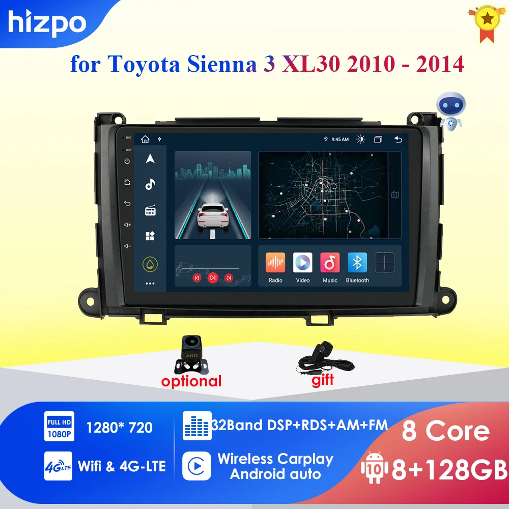 Авторадио 2din Android 10 автомобильный мультимедийный плеер для Toyota Sienna 3 XL30 2010 - 2014 автомобильное радио GPS-навигация WiFi Bluetooth 4G