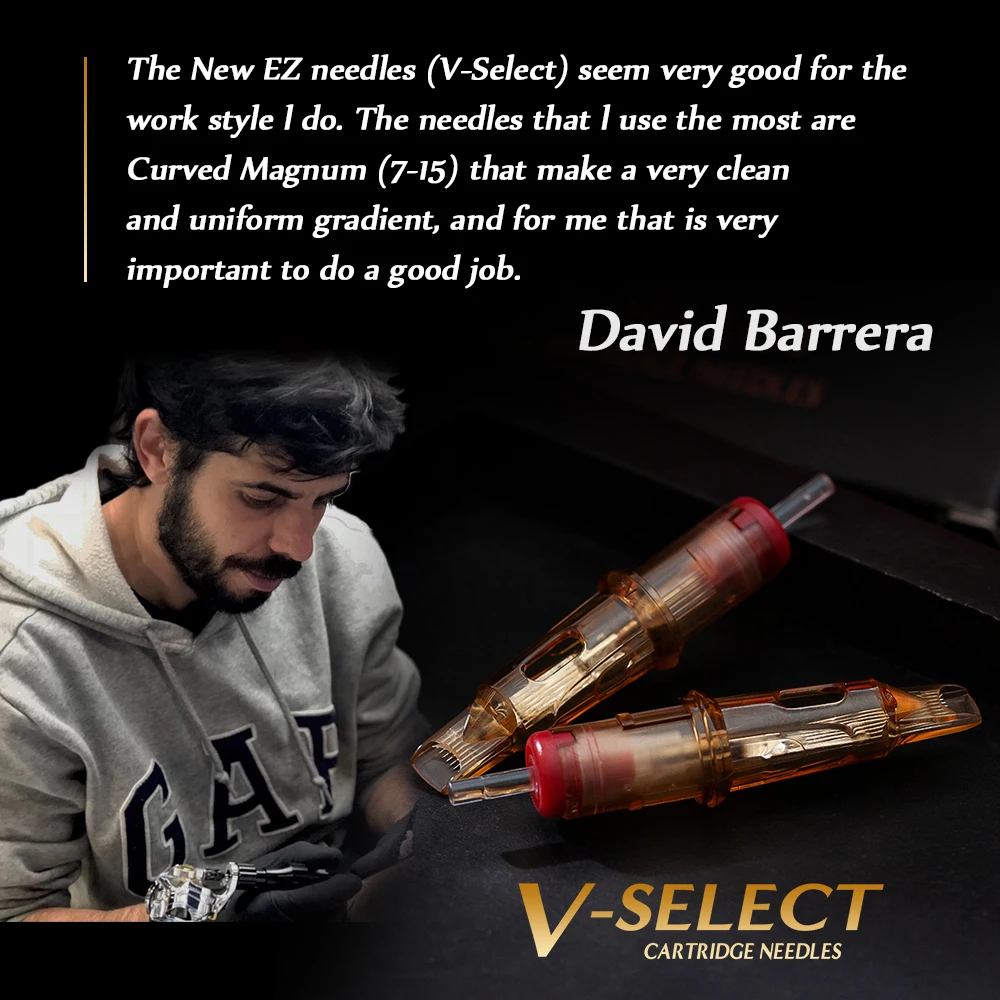 Оснащенные v-образной системой, картриджи с v-отбором оснащены системой точного позиционирования и эластичной мембраной для создания экстремальных характеристик татуировок