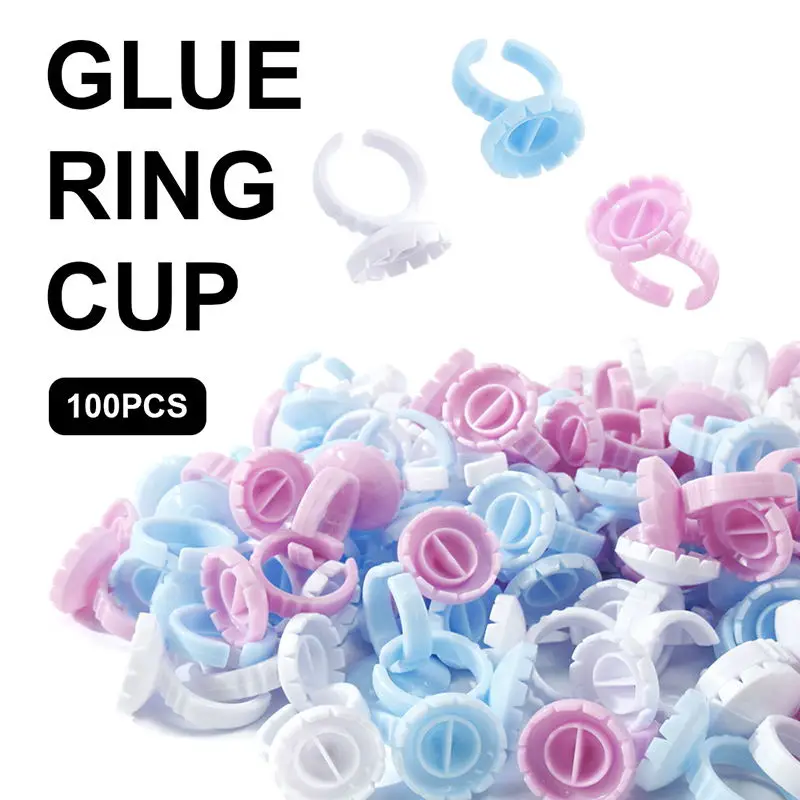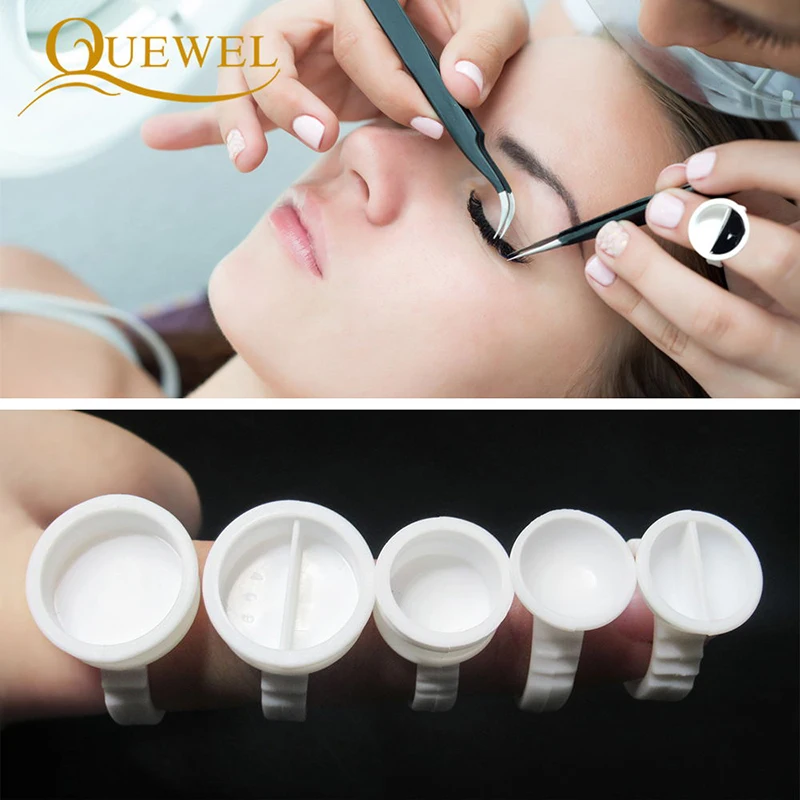 Quewel 100 шт Одноразовые клеевые кольца для ресниц Клей Палетка держатель легко сделать объем вентиляторы ресницы инструмент для наращивания оптом