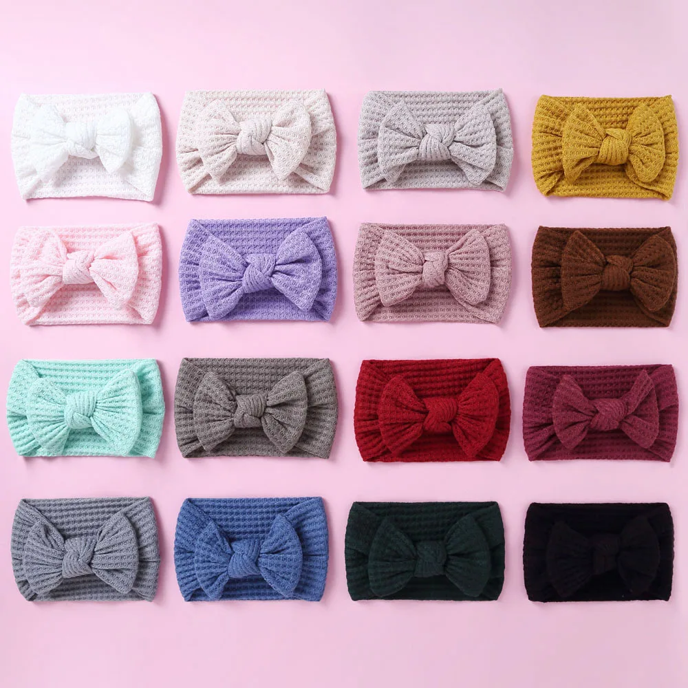 Детские головные уборы из вязаной ткани, 32 шт.лот, новинка 2021, классические широкие повязки на голову с узлом для осени и зимы, Детские аксессуары для волос для девочек
