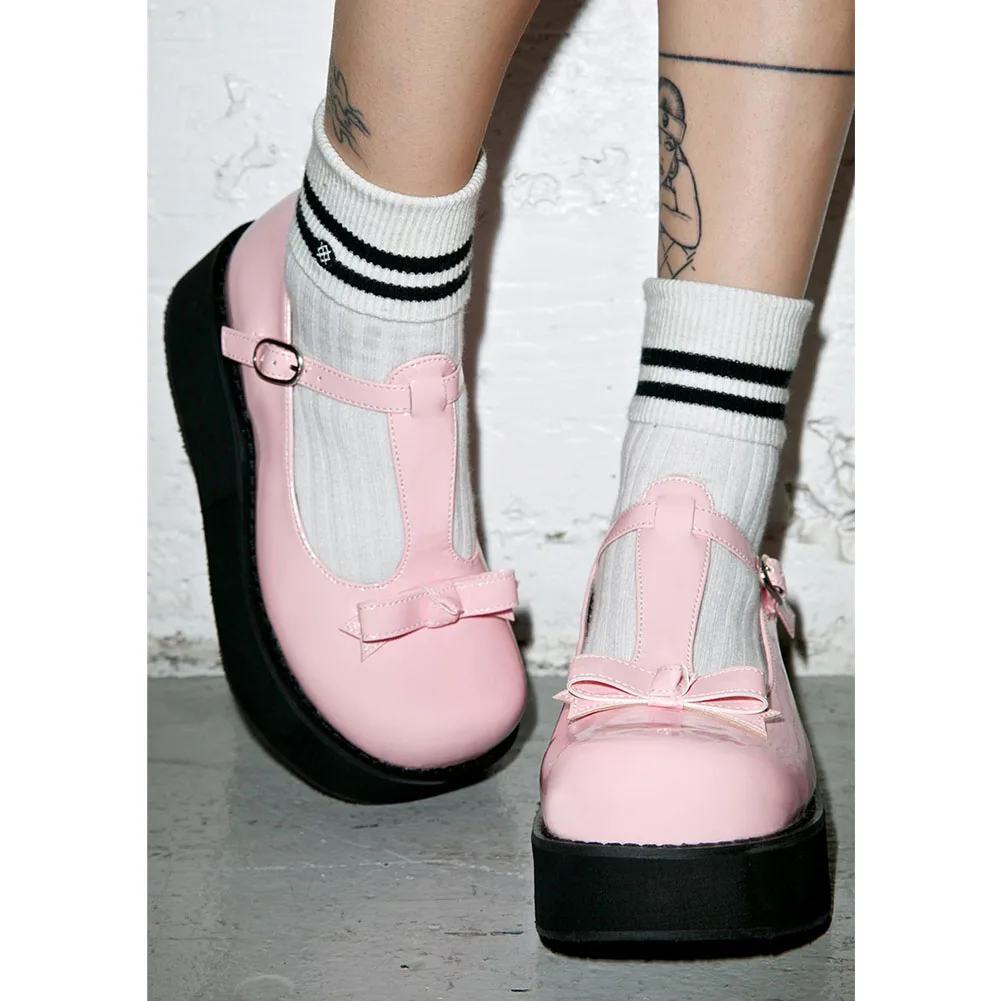 Женские туфли-лодочки в стиле Лолиты DoraTasia, милые туфли-лодочки с бантом в виде сердца, платформа, танкетка, каблук