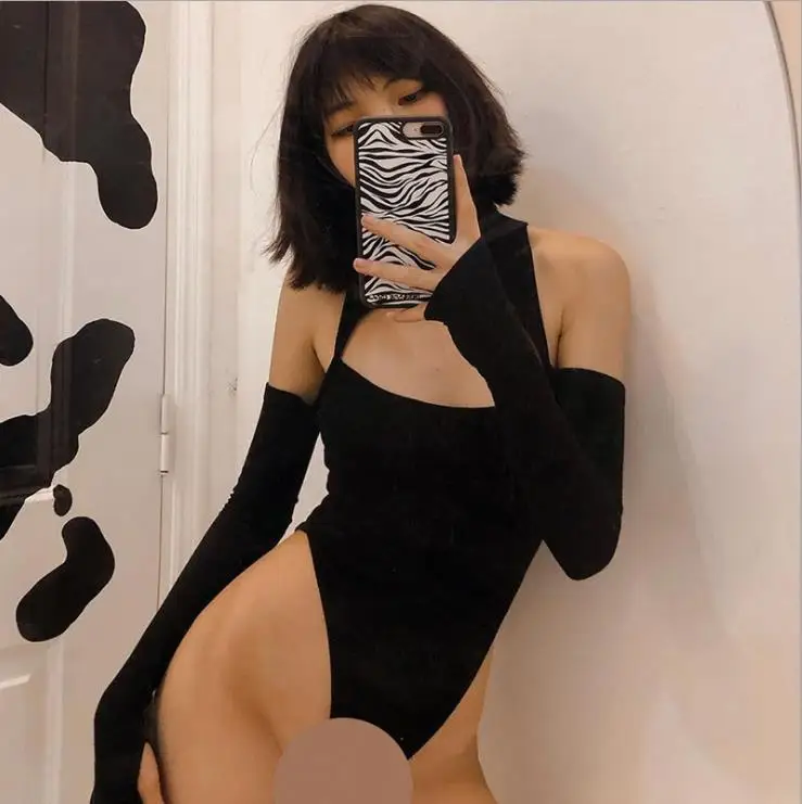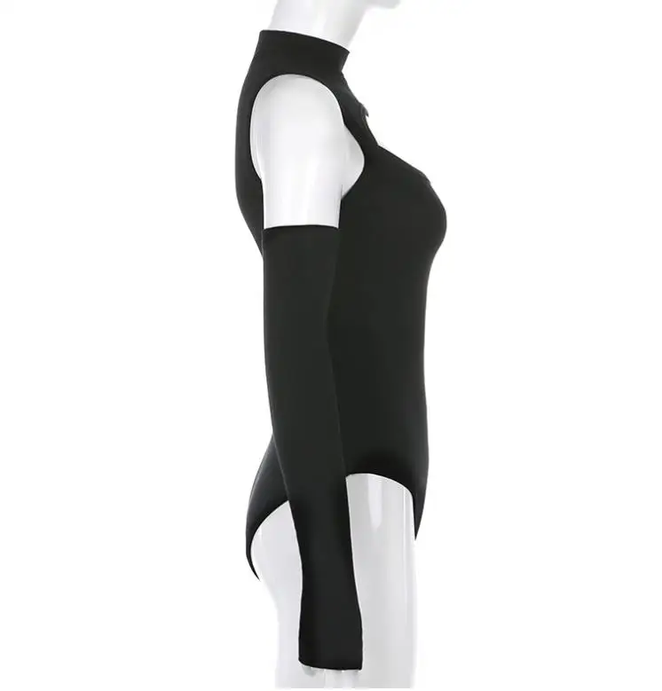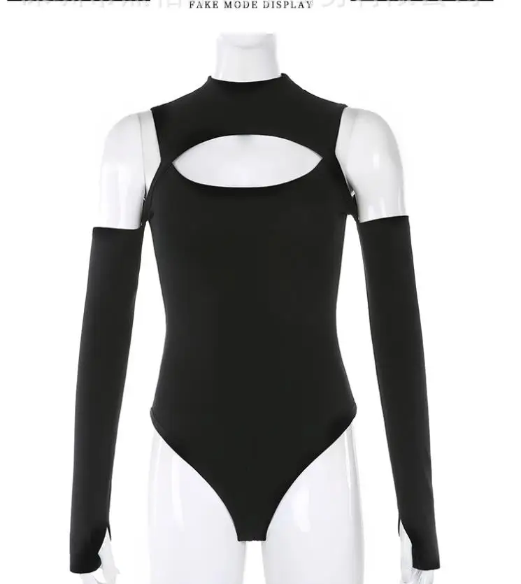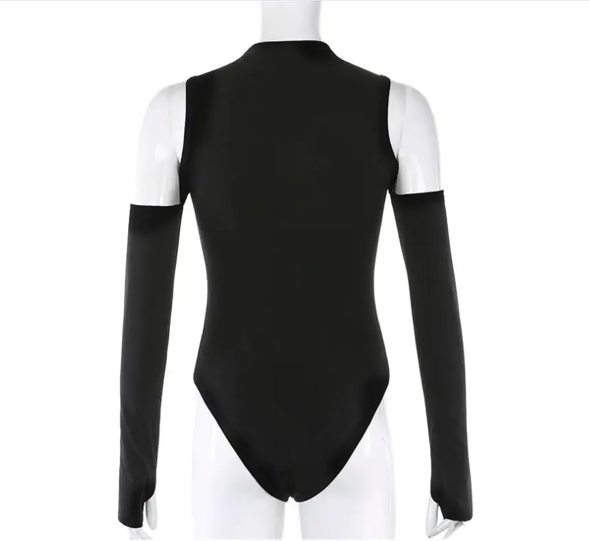 Женское боди с длинным рукавом, однотонный комбинезон с открытыми плечами и полувысоким воротником
