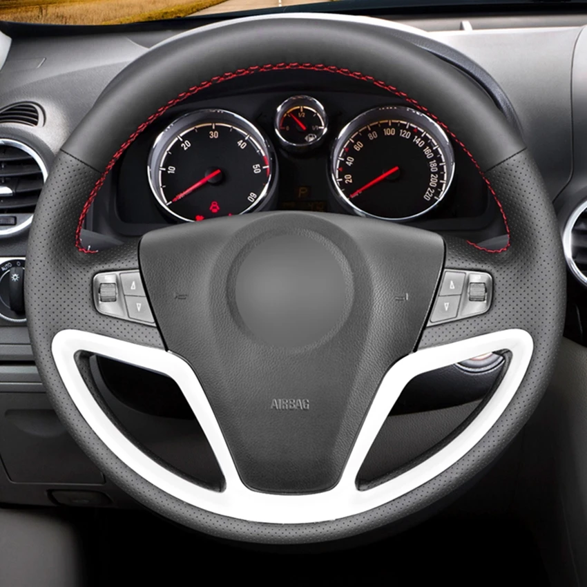 Прошитая вручную черная искусственная кожа чехол на руль автомобиля...