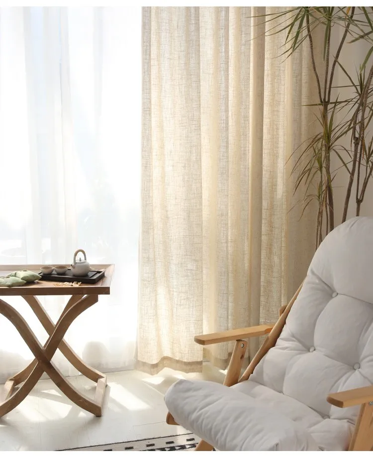 Льняные полузатемненные занавески в японском стиле из рами, нордиче...