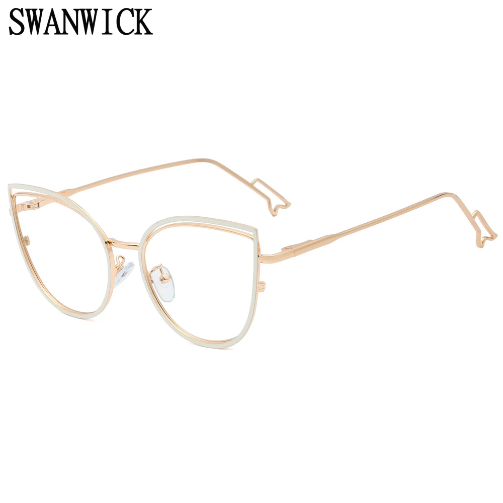 Swanwick кошачий глаз синий светильник, блокирующие очки, женские компьютерные оптические оправы для очков, модные женские металлические ретро черные красные прозрачные