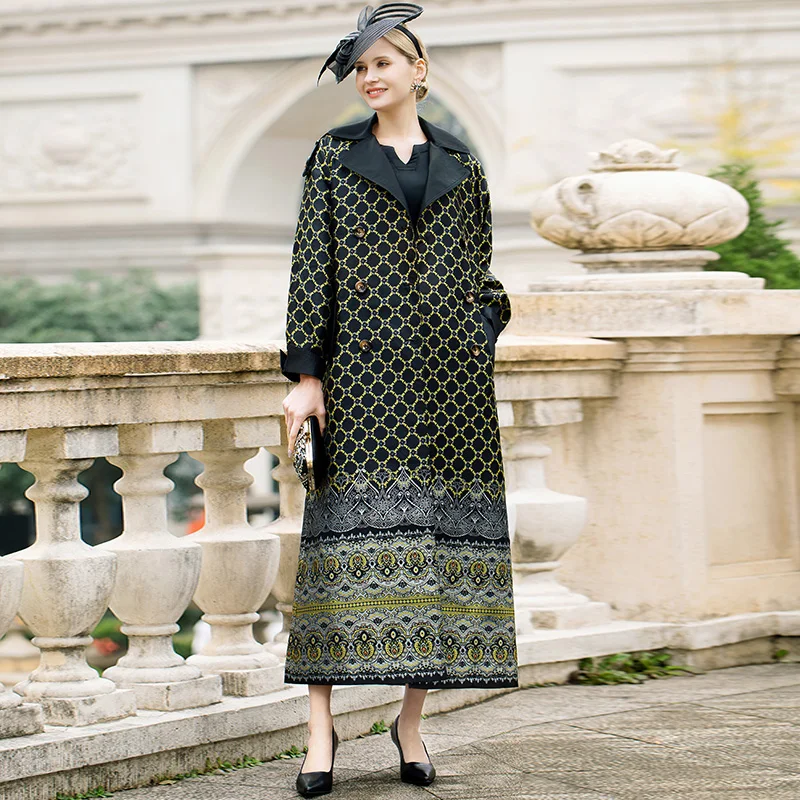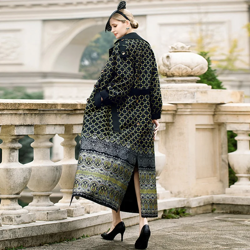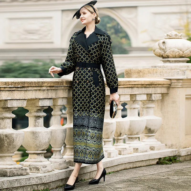 Женский Тренч с отложным воротником, винтажное подиумное пальто в британском стиле с вышивкой, верхняя одежда на осень и зиму DZ1316