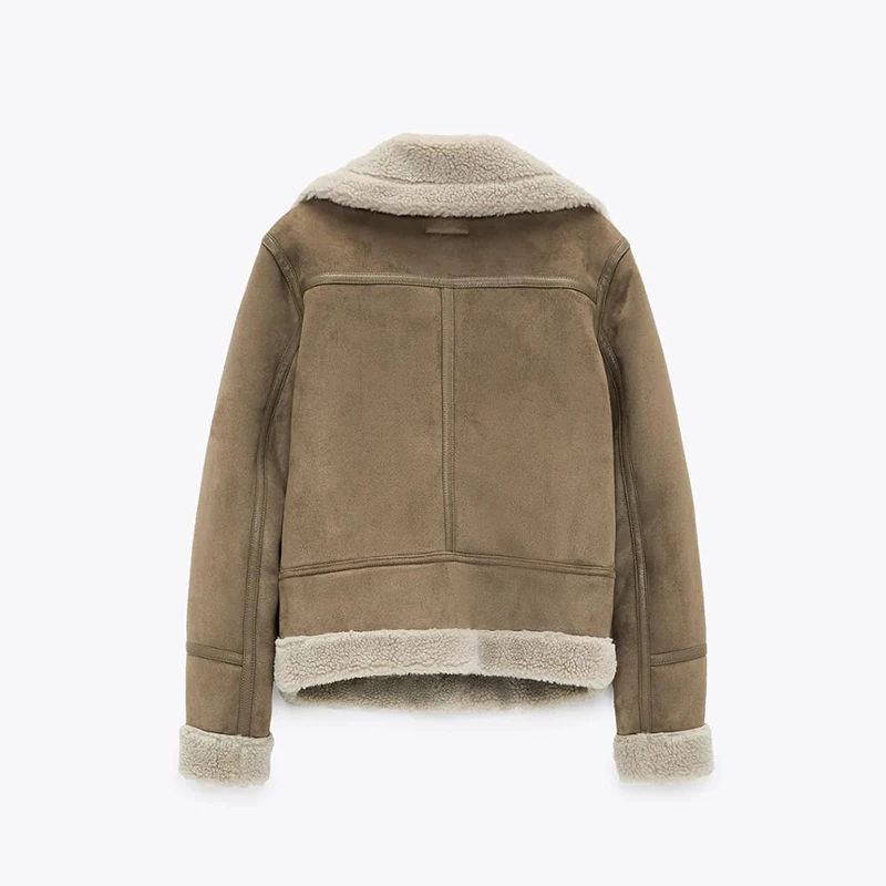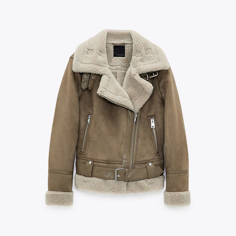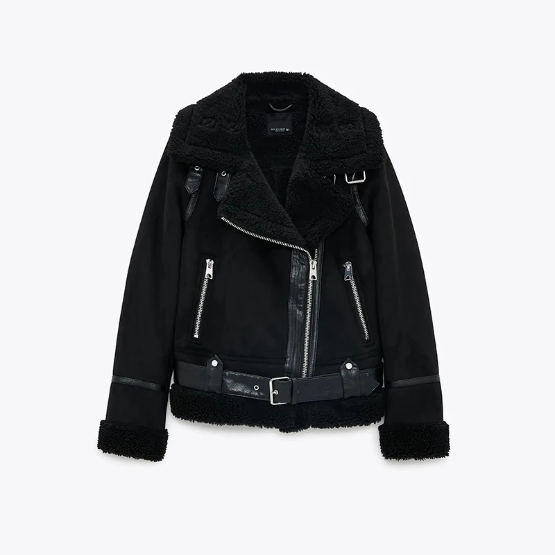 Женское зимнее пальто Ailegogo из искусственной кожи, толстое теплое пальто в стиле ретро из замши, овечьей шерсти, мотоциклетная куртка с поясом, верхняя одежда