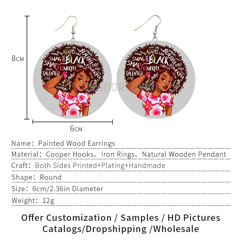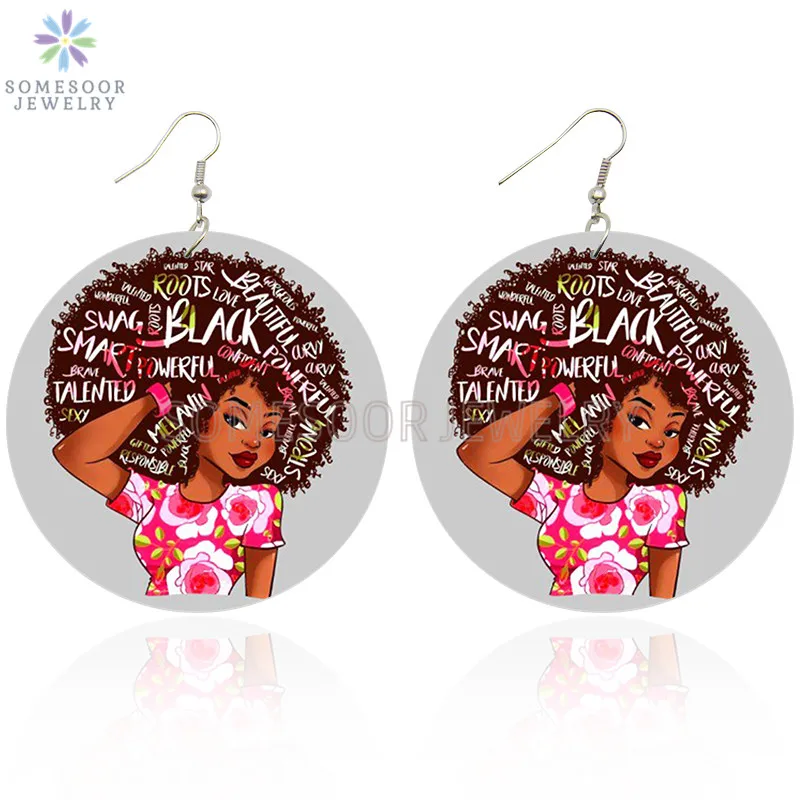 SOMESOOR черные корни афро натуральные волосы кудрявые девушки деревянные серьги-капли мощные высказки печатные петли Висячие для женщин Подарки
