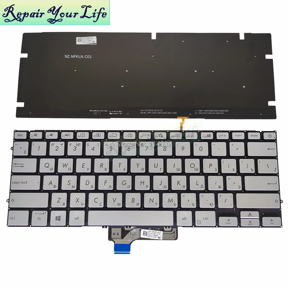 Русская русская сменная клавиатура для ASUS ZenBook 14 UM431 UM431D UM431DA UX431F UX431FA 9Z.NFKBN.C0H Серебристая подсветка светильник кой