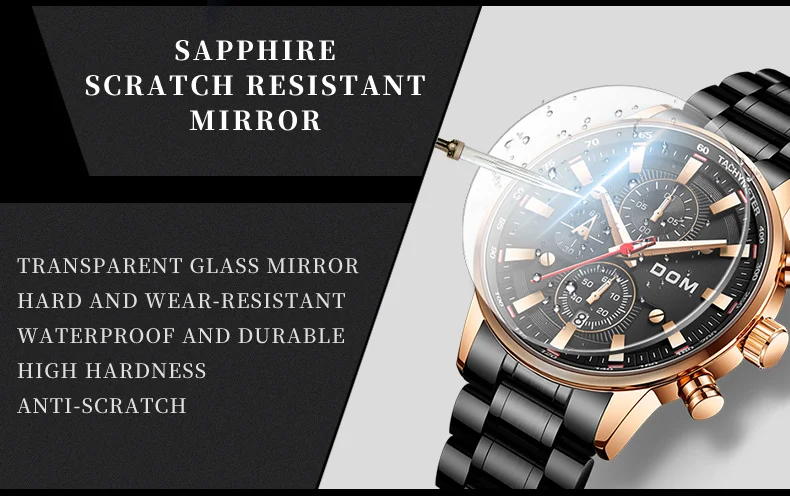 Часы DOM Sapphire мужские наручные спортивные, брендовые роскошные в стиле милитари, с хронографом из нержавеющей стали