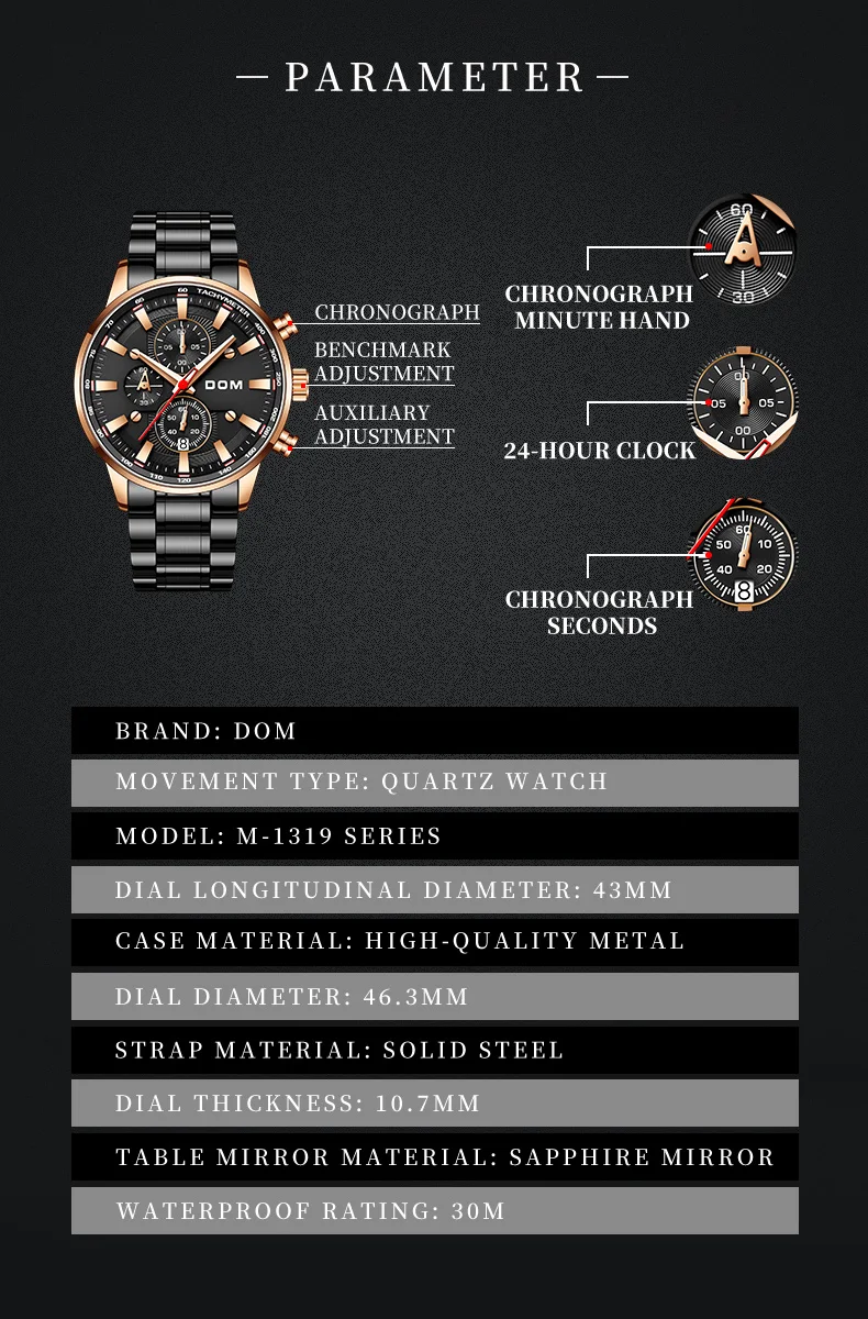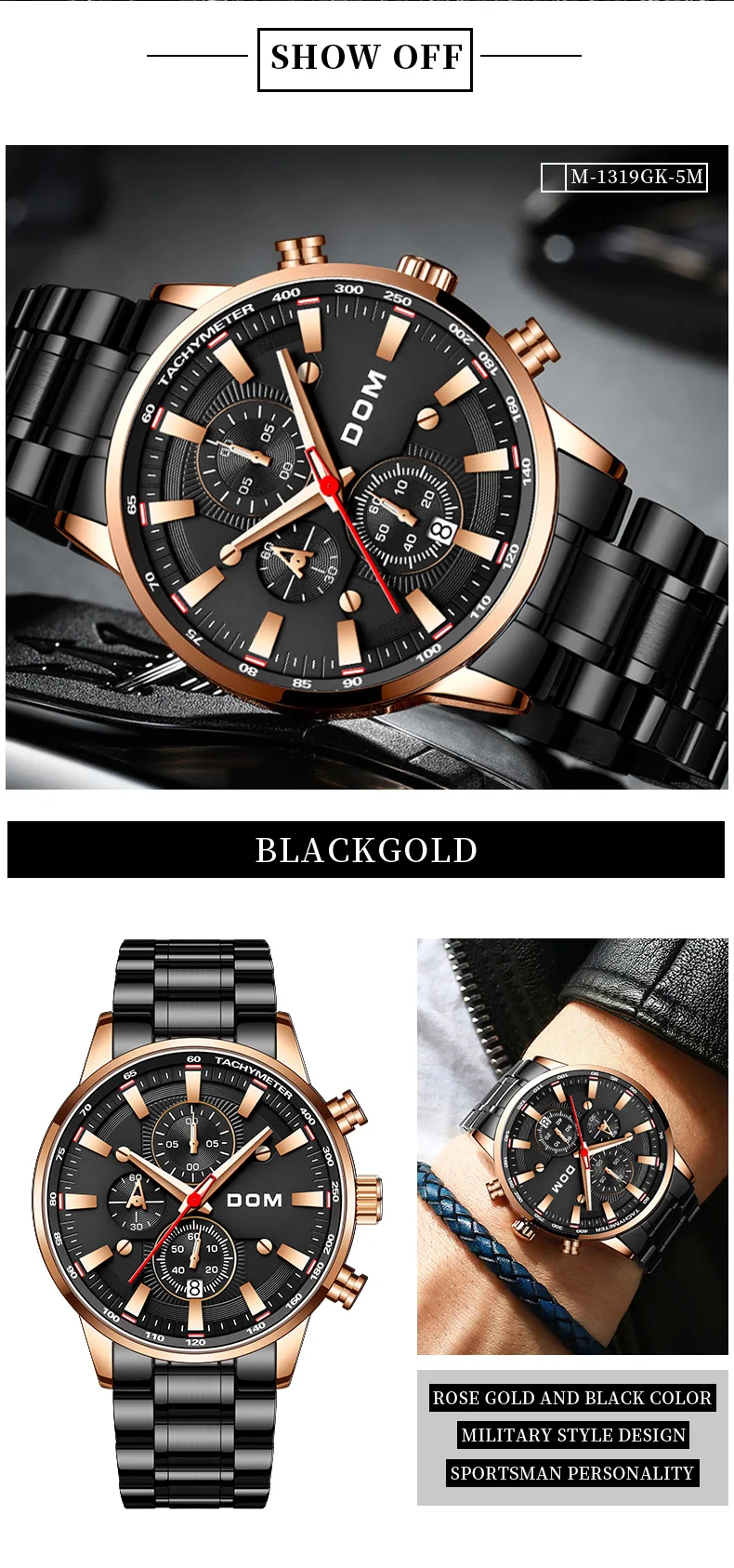DOM модные многофункциональные мужские часы, роскошные жесткие мужс...