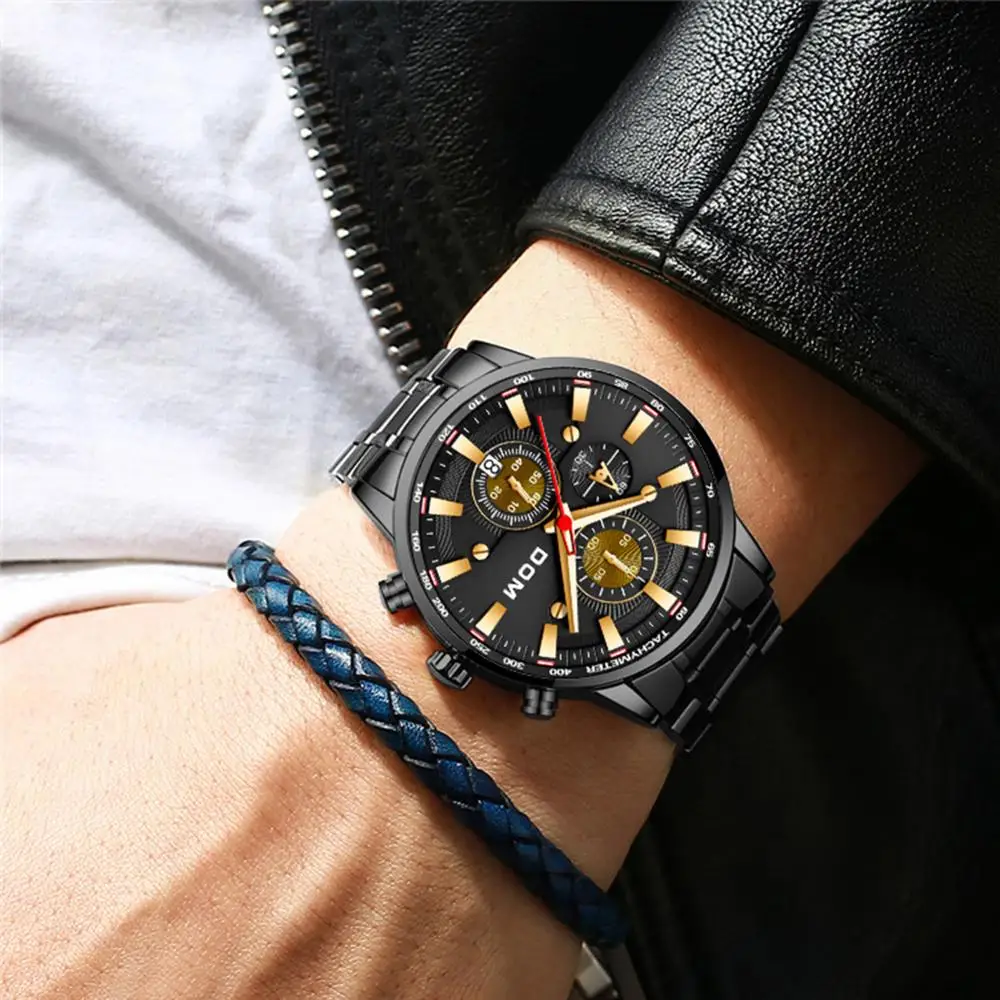 Мужские водонепроницаемые аналоговые кварцевые часы DOM из нержавею...