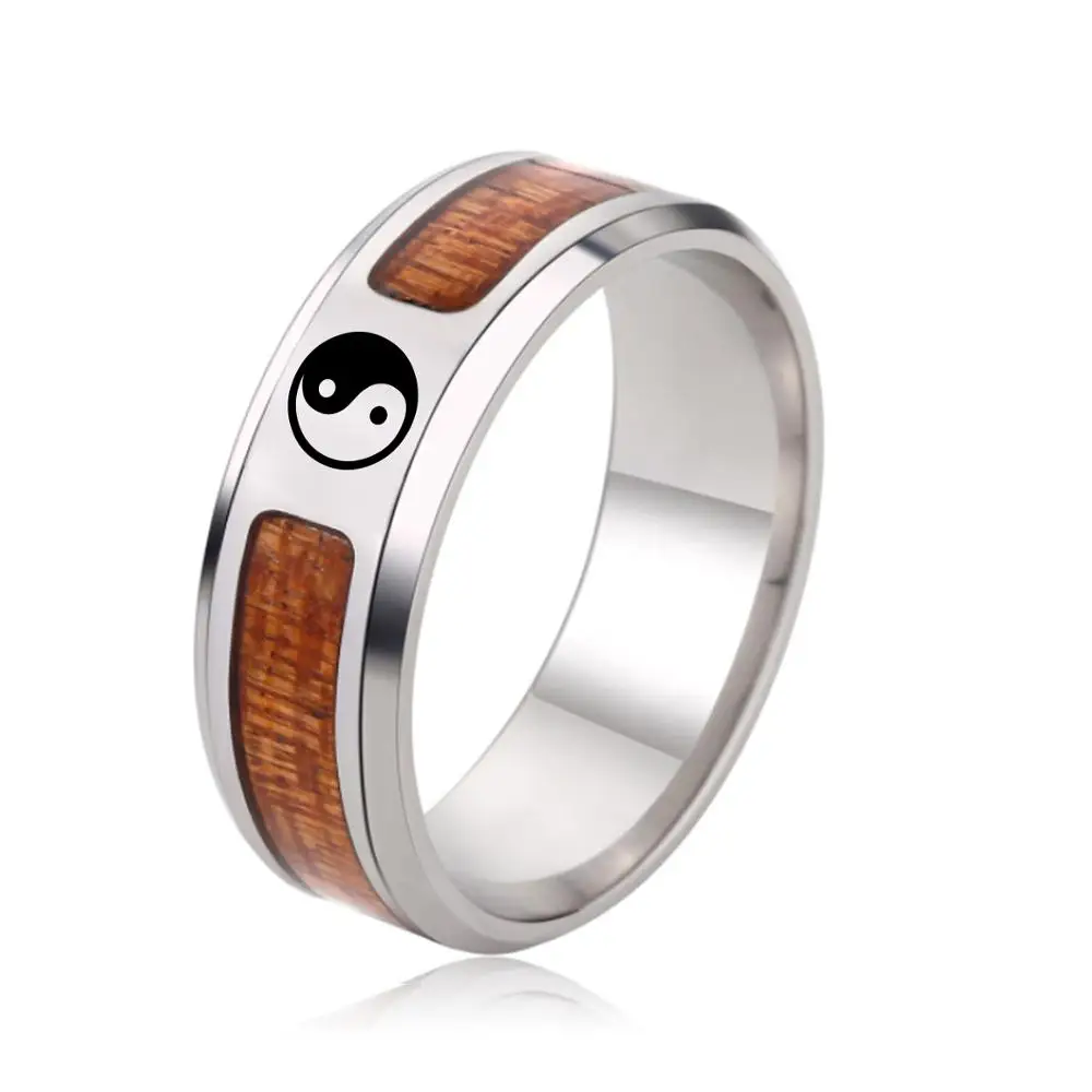 SHOUMAN персонализированное деревянное кольцо для женщин мужчин Дерево жизни Знаки зодиака мозаика спортивный логотип из нержавеющей стали Индивидуальные ювелирные изделия