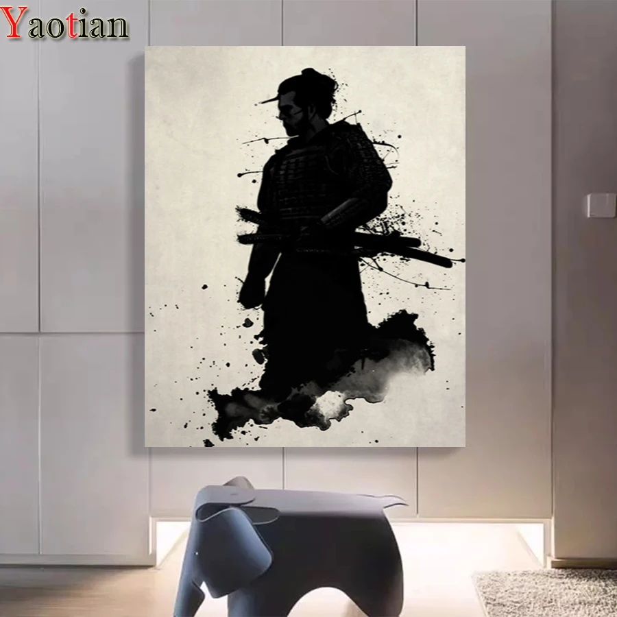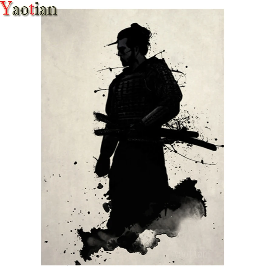 5D алмазная живопись, японские самураи, черно-белая Алмазная вышивка, полностью квадратные круглые пазлы, новинка домашний декор ручной работы