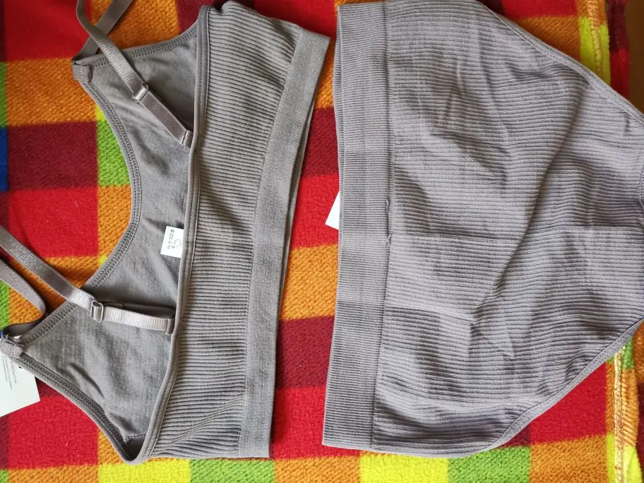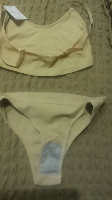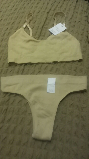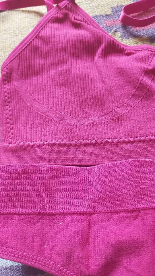 трусы на об 94 норм, достаточно высокие. есть ластовица похожа на хлопок. и шов, который возможно кому-то будет натирать. швы ровные. материал спандекс и полиамид. лифчик на ог 75 (под грудью) туговато одевать. можно девочкам с чашечкой А,B, C (грудь не поддерживает (как майка, только короткая и с резиночкой под грудью). поэтому у кого С имейте ввиду что сиськи ваши влезут но держаться будут на мясе. брительки регулируются, но не снимаются. ткань спереди двухслойная. без вкладыша (кармашка нет) соски в определенных условиях будут торчать