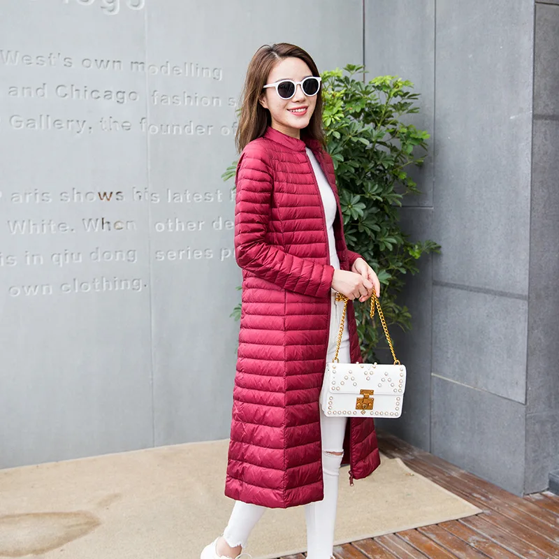 Женская куртка на белом утином пуху, ульсветильник, однотонная, тонкая, на осень и зиму