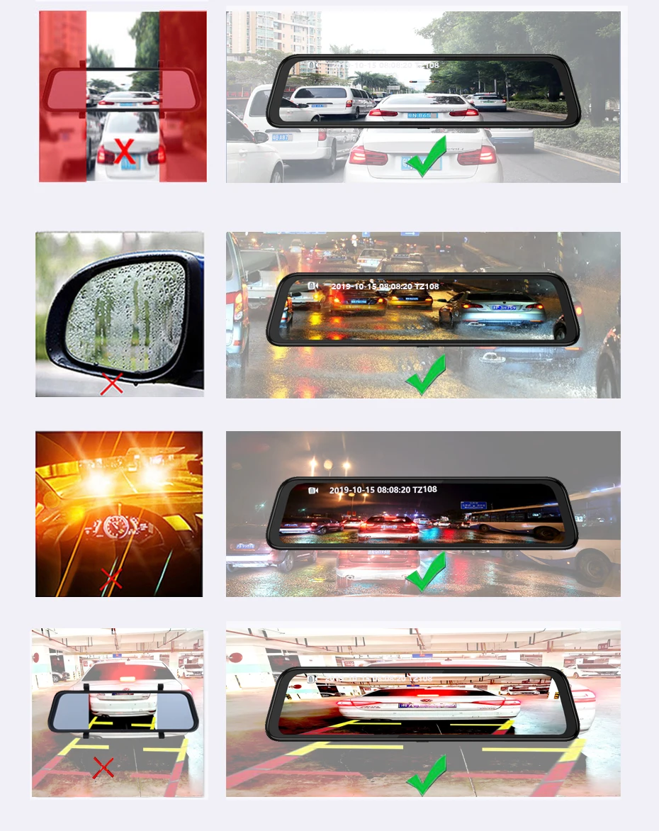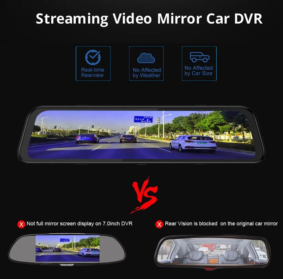 Традиционные зеркала заднего вида просто обеспечивают ограниченное поле заднего вида, большую часть времени, нам нужно повернуть голову назад, чтобы увидеть больше, когда мы паркуем. Видеорегистратор Streaming media позволяет избежать не только препятствий для подголовников или задних столбов, но и дает примерно в 3 раза больше стандартного зеркала заднего вида. Более того, видимость потрясающая даже в ночное время и в дождливые дни.