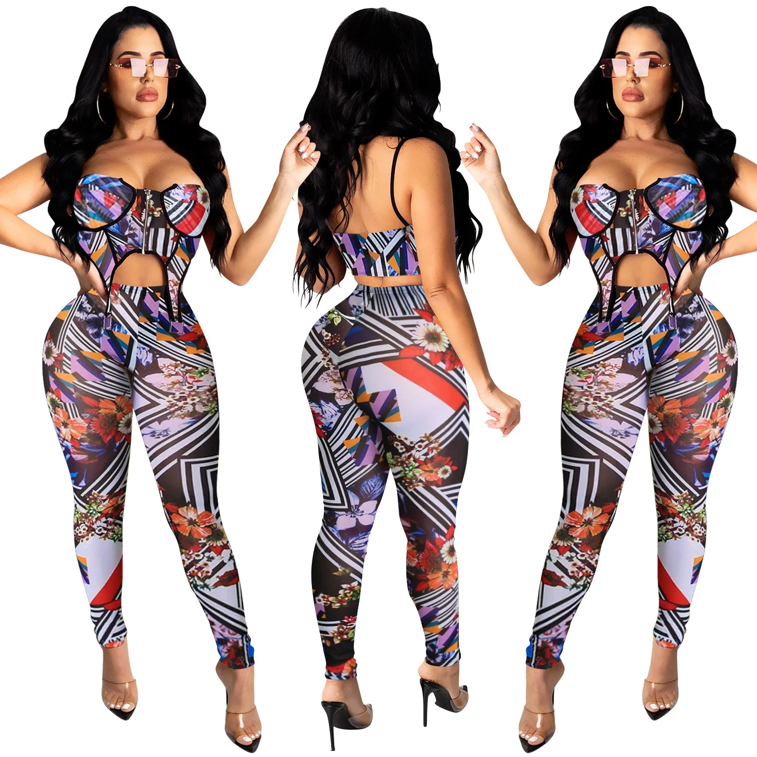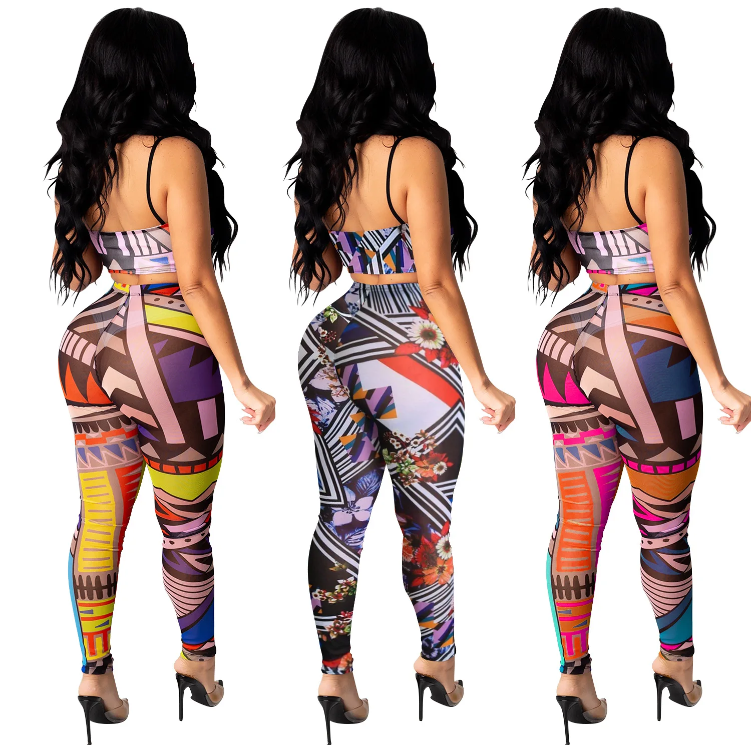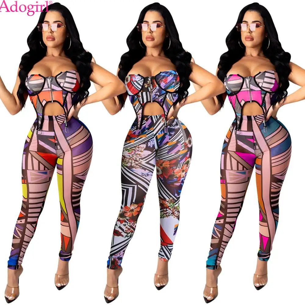 Пикантный комплект Adogirl из двух предметов с принтом на бретелях-спагетти, укороченный топ без рукавов с открытой спиной, брюки-карандаш, пикантная одежда для ночного клуба