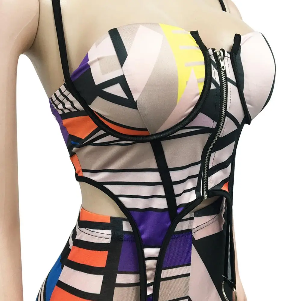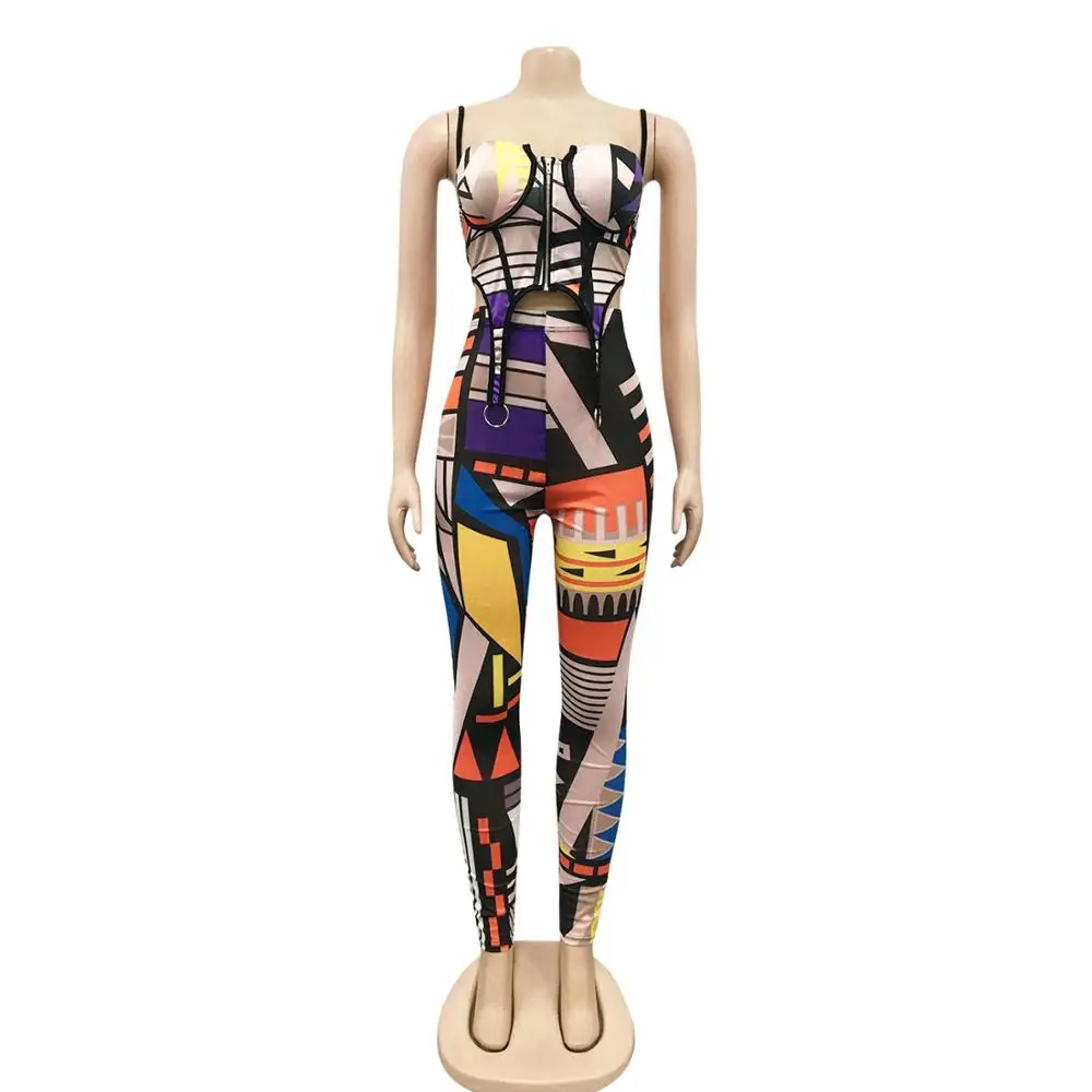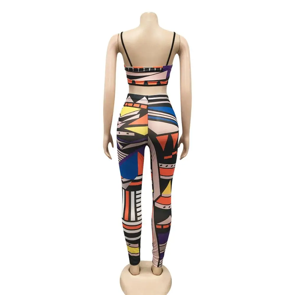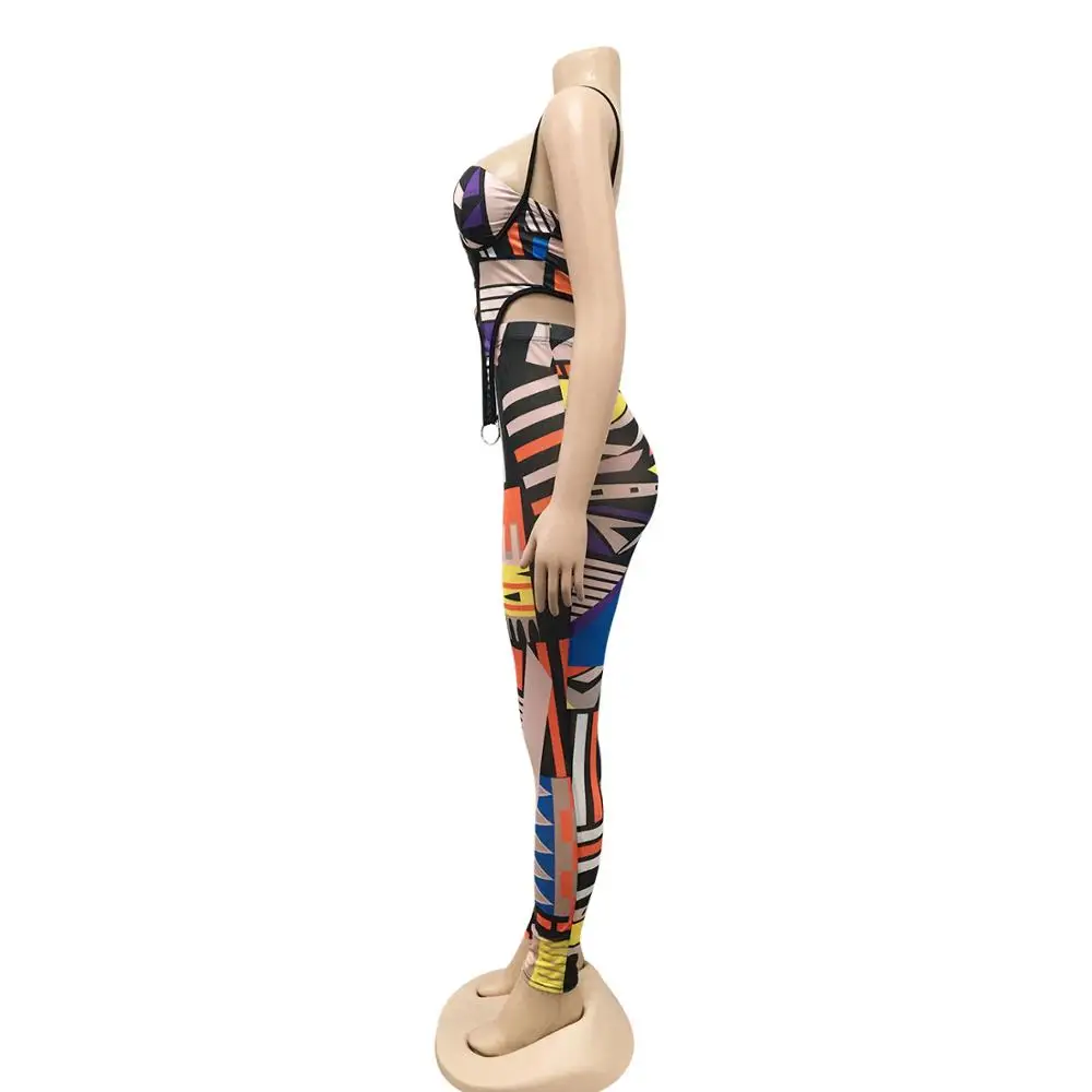 Комплект из двух предметов с пикантным принтом на тонких бретельках, комплект без рукавов, укороченный топ с открытой спиной, узкие брюки, пикантный наряд для ночного клуба