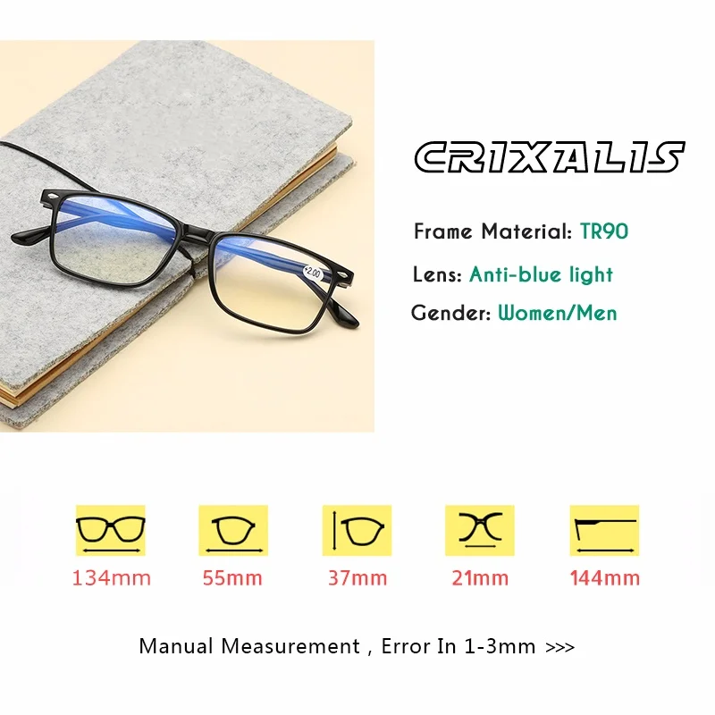 Очки для чтения CRIXALIS мужскиеженские, прямоугольная форма, защита UV400, для работы за компьютером и дальнозоркостью