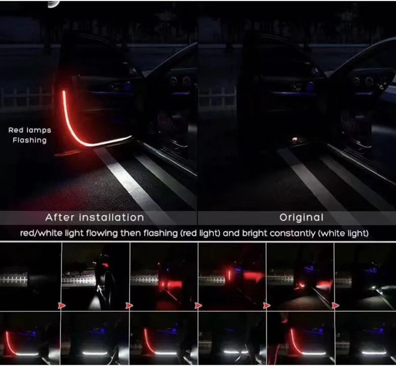 2 шт.компл. 1,2 м Автомобильная дверь светодиодный предупредительный мигающий светильник светящаяся полоса открывающаяся Предупреждение красный предотвращение столкновения поток лампы бар