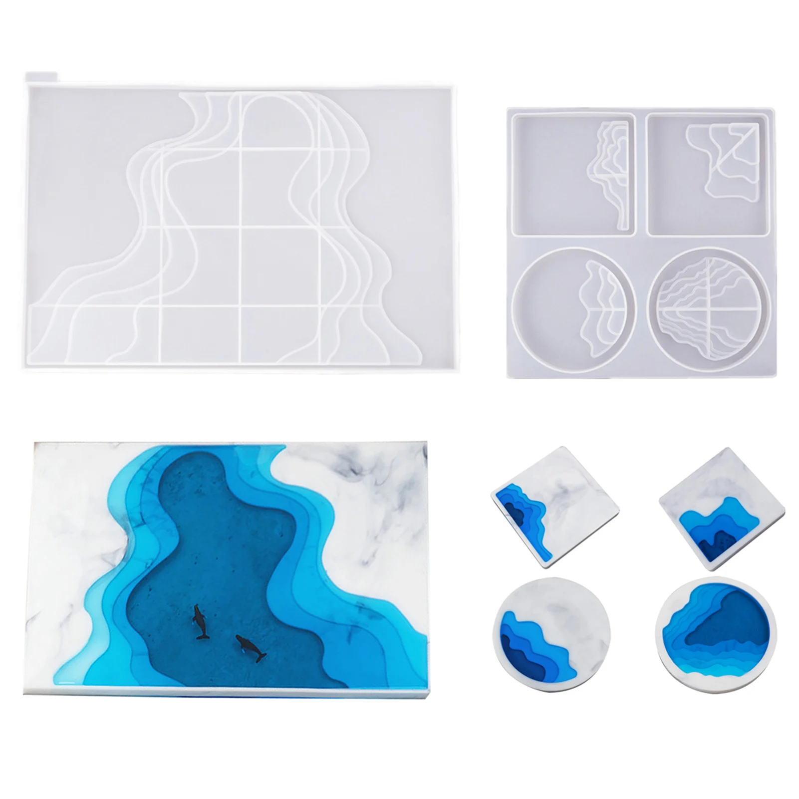 Форма сделай сам для эпоксидной смолы, асимметричный поднос для океан, террасы, гор, серьезная силиконовая форма для подстаканника ручной работы, зеркала, формы для смолы