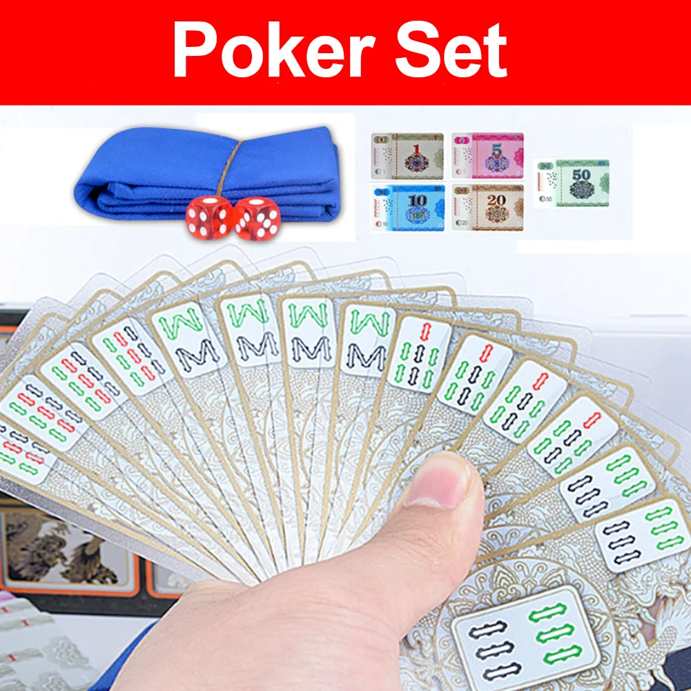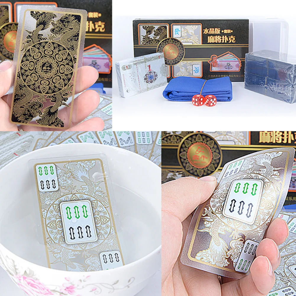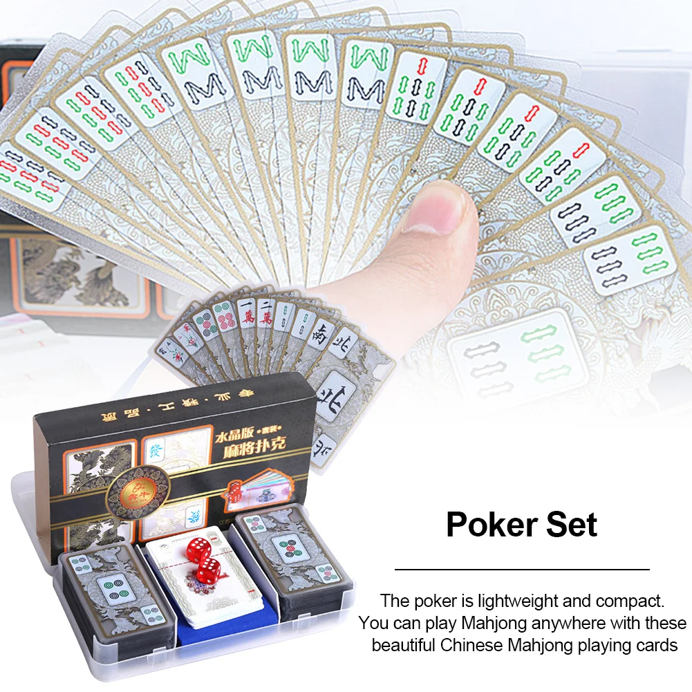 С украшением в виде кристаллов Набор для игры в маджонг Водонепроницаемый Портативный Пластик маджонг Набор Игральных Карт с 2 кубики мешочек из фланелета для Семья сбор часть