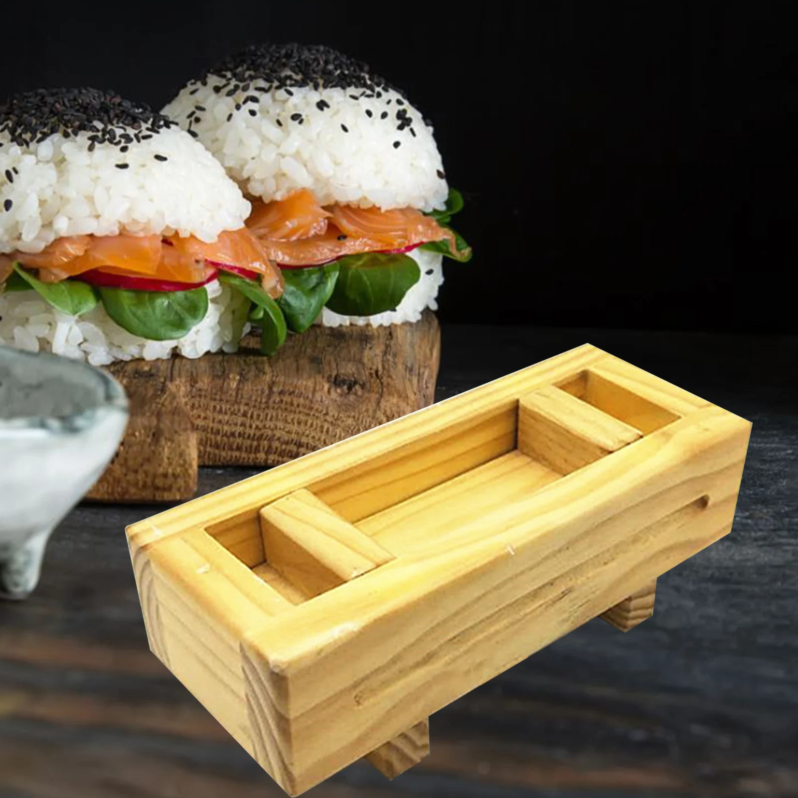 Форма для риса для суши, Набор для изготовления деревянных суши для кухонных принадлежностей Oshizushi, инструменты для приготовления пищи 1, суши-машина: Эта суши-машина является традиционной формой, используемой для изготовления Oshizushi или прессования суши.