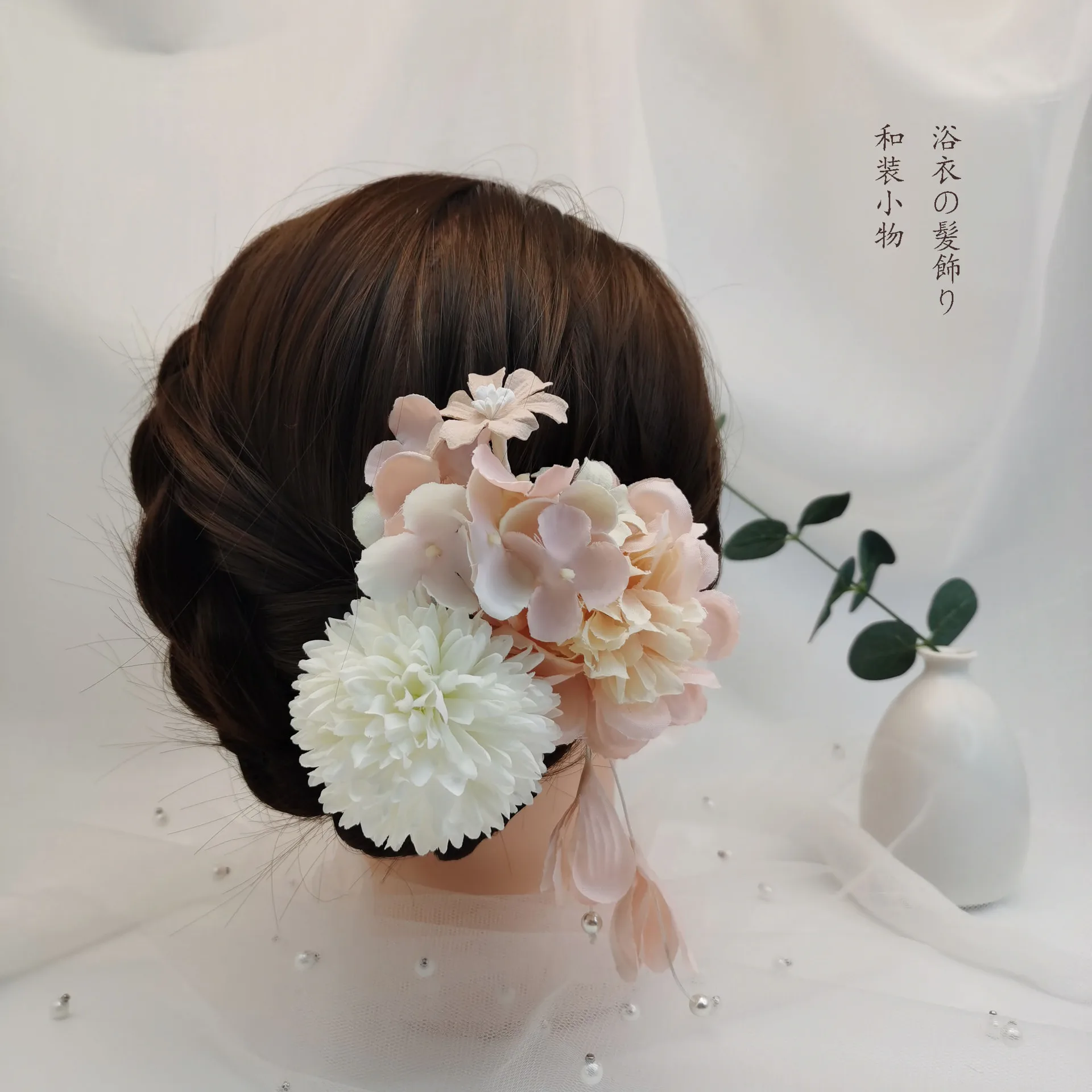 Кимоно женское в японском стиле, элегантный головной убор с цветком, жемчужная заколка-Пряжка, в античном стиле с застежкой для волос