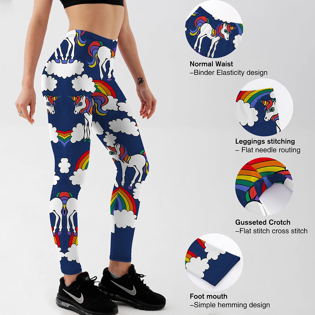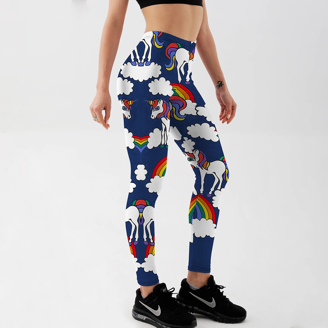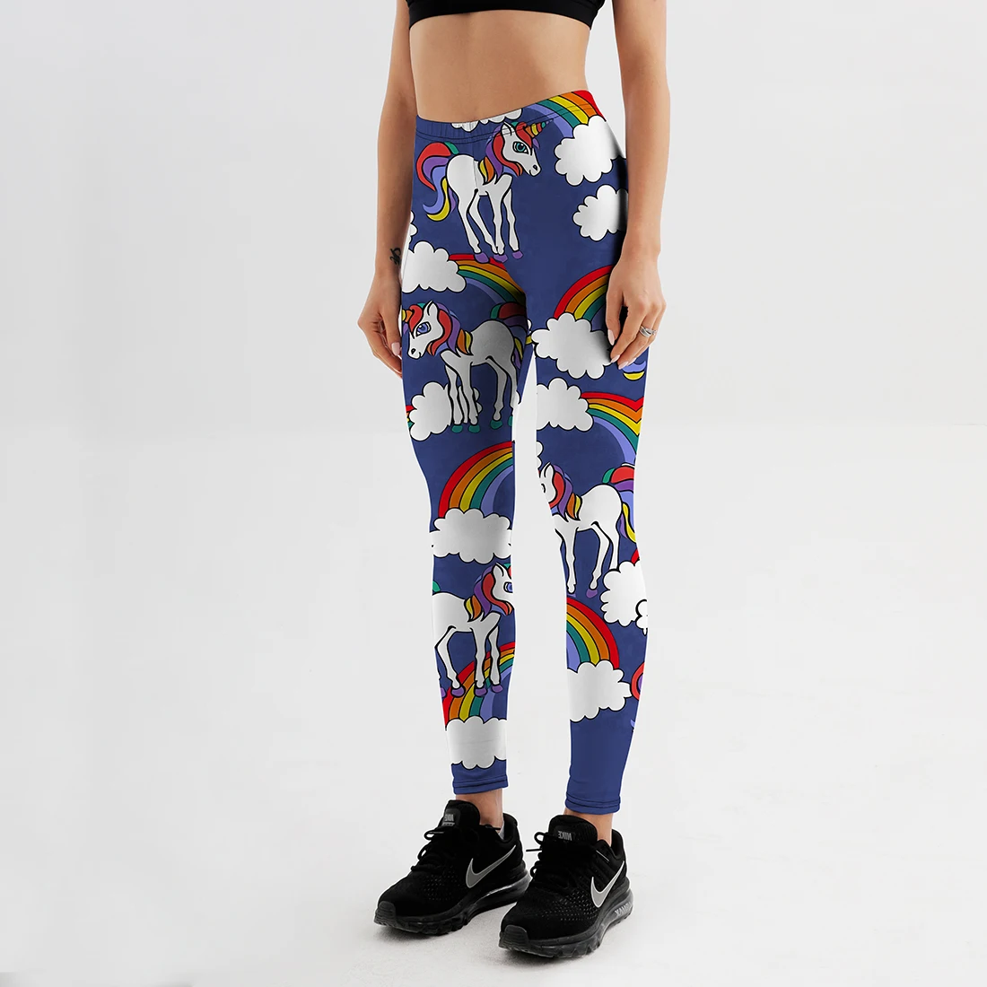 Пикантные женские леггинсы с принтом мультфильма Радуга бог лошадь облако леггинсы тонкие с высокой талией леггинсы для фитнеса с эффектом пуш-ап