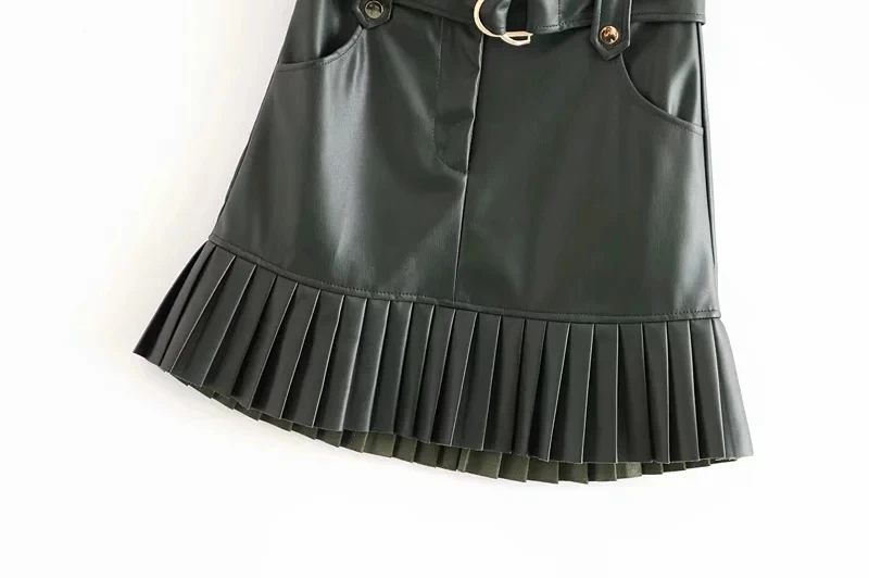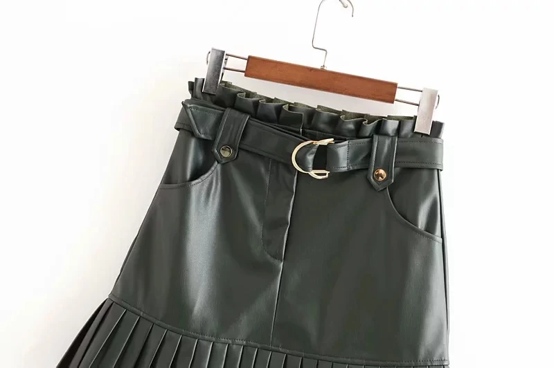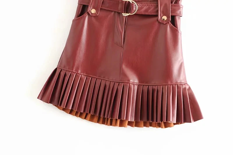 Юбка-мини плиссированная из ПУ кожи, с поясом и высокой талией, 4 цвета