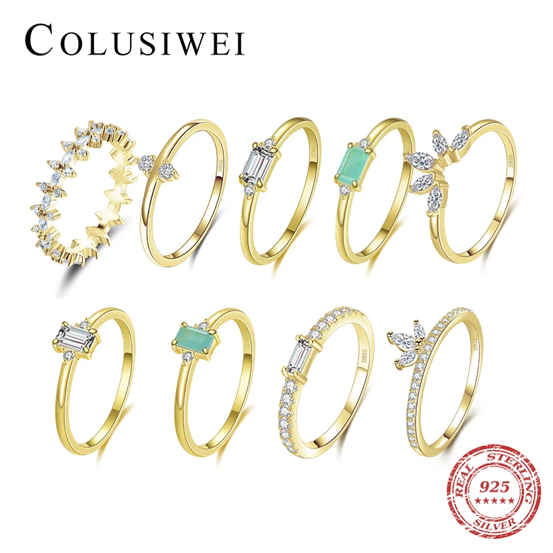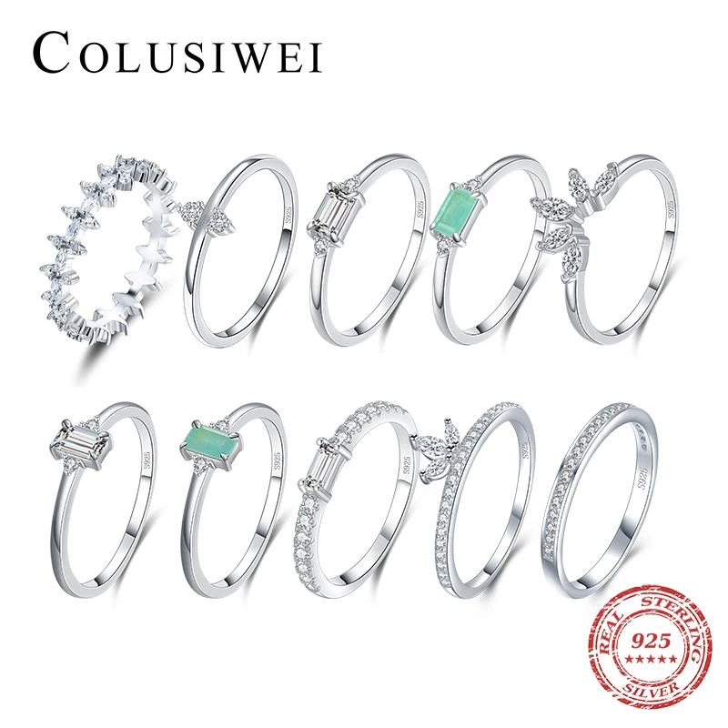 Colusiwei 925 пробы Серебряный Изумрудный вырез прозрачный CZ корона цветок Paraiba Турмалин штабелируемые перстни для женщин ювелирные изделия