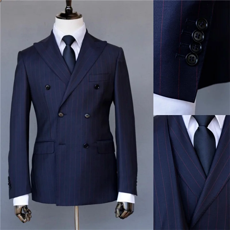 Свадебные костюмы из 3-х предметов в темно-синюю полоску, индивидуа...
