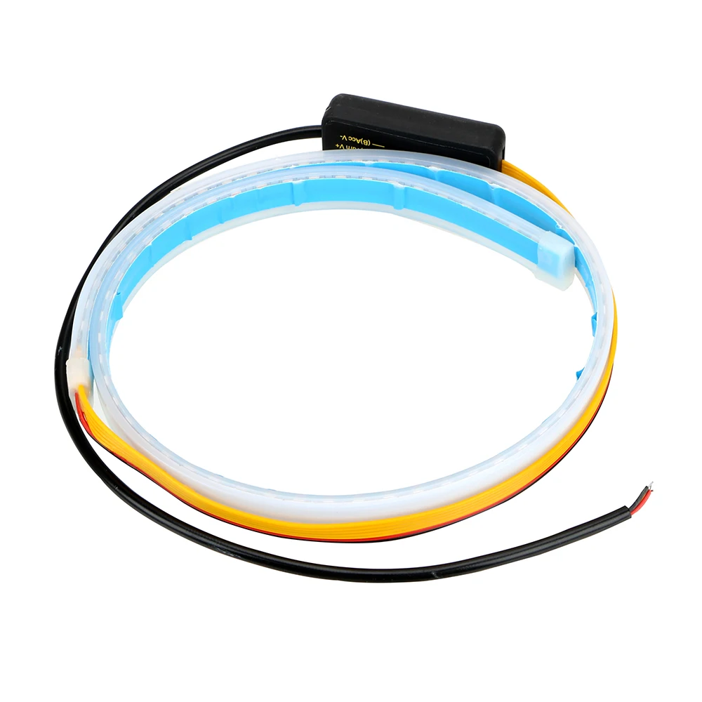 45 60 см дневные ходовые огни светильник Водонепроницаемый белого и желтого цвета автомобиля Светодиодные ленты на очень тонком каблуке DRL мягкие гибкие трубы руководство лампы сигнала поворота