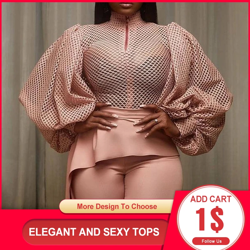 Женская блузка на молнии, Розовая прозрачная сетчатая блузка в африканском стиле, летний топ, размера плюс, 2021