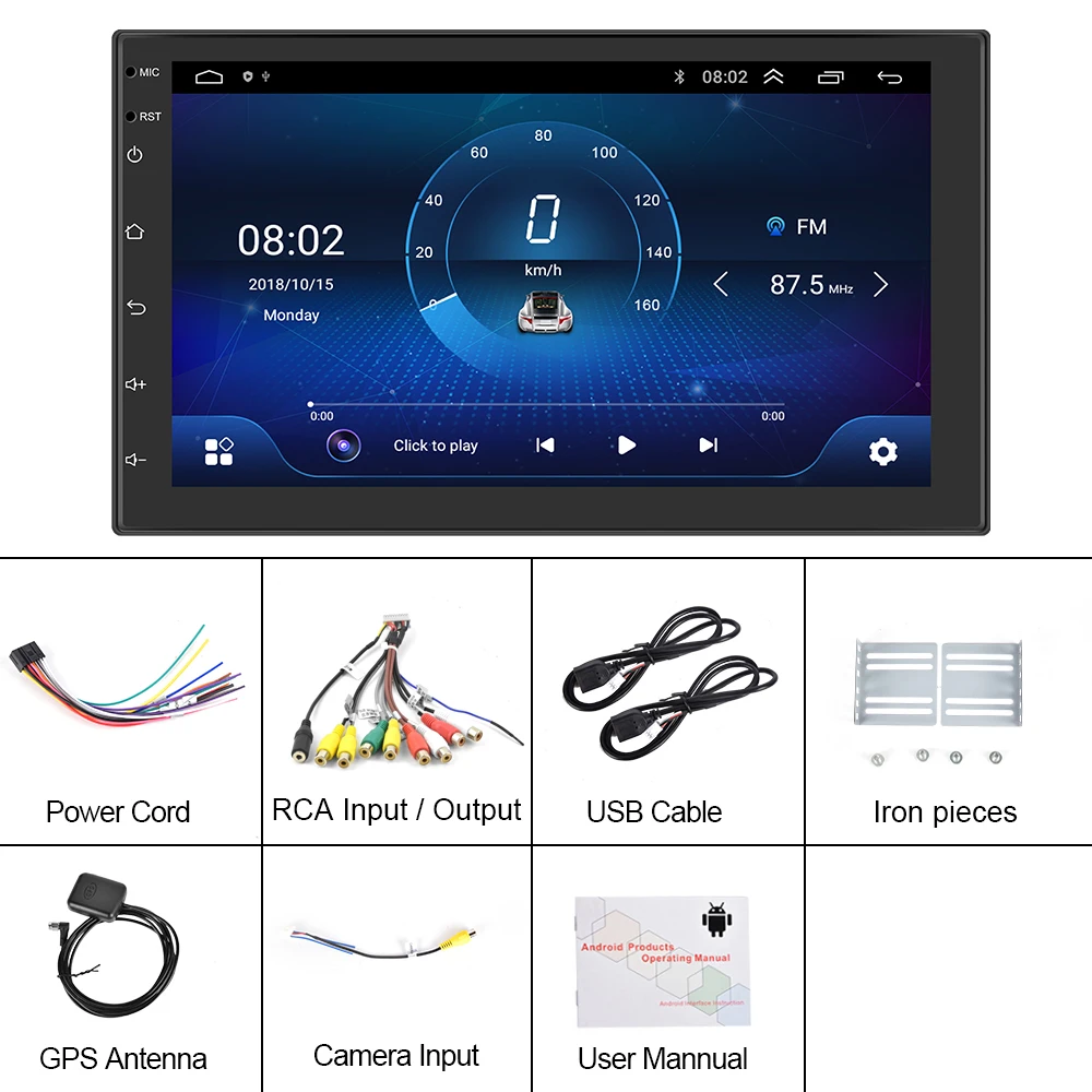1 x Android Carplay MP5 плеер1 x Антенна GPS1 х электропроводка2 usb-адаптера1 х RCA входной и выходной провод1 x кулачковый провод2 x монтажный кронштейнЧасто задаваемые вопросы: