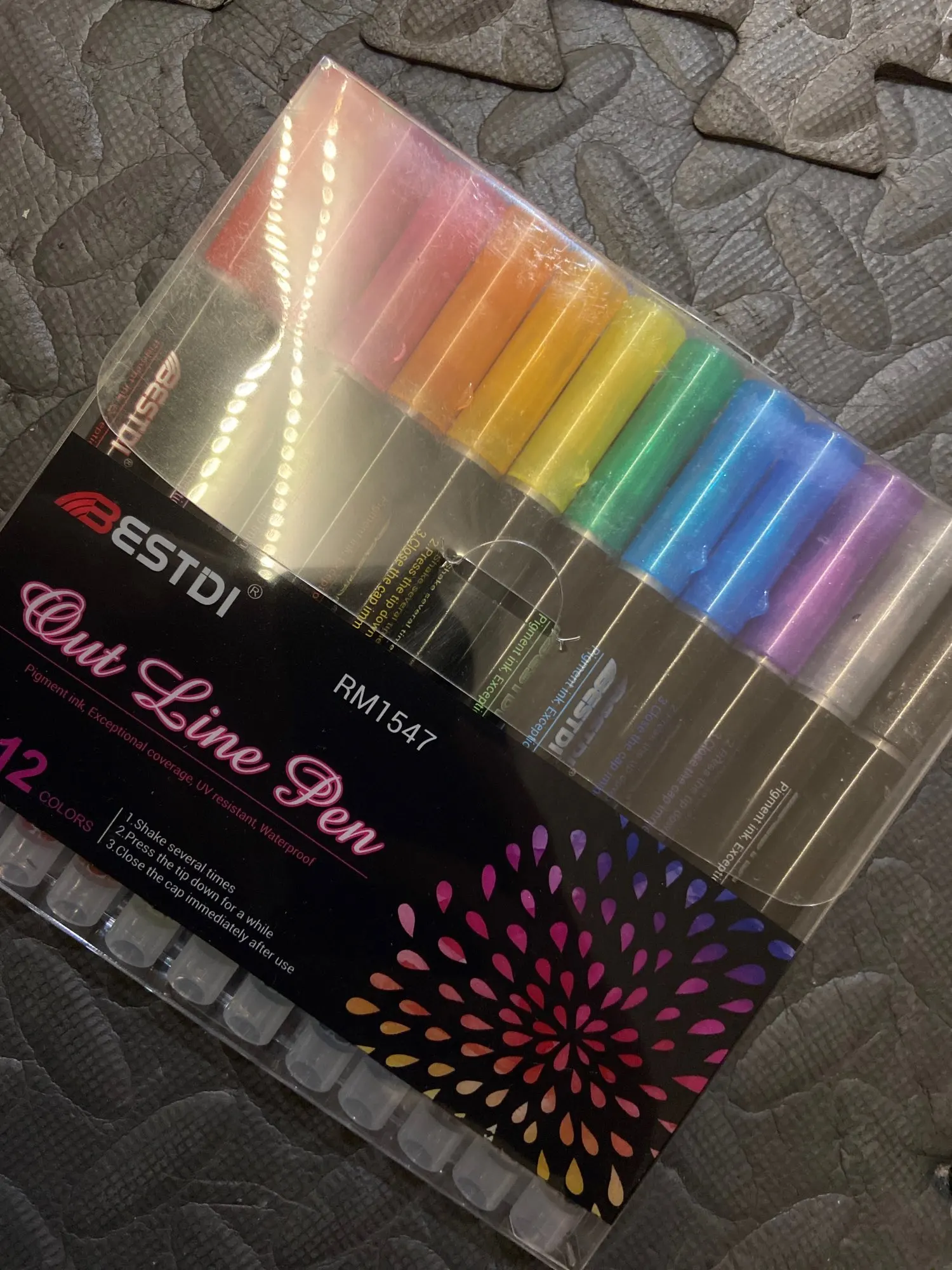 12 шт.компл. контур Маркеры цвета "металлик", двойная линия Волшебные мерцающие ручки для рисования, рисования, каллиграфии, школа товары для рукоделия