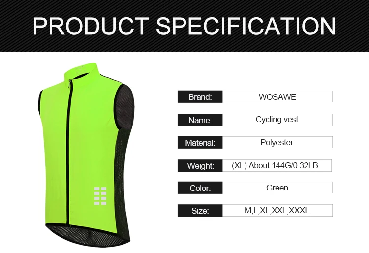 Светоотражающий Жилет WOSAWE, для велоспорта, ветрозащитный, непром...