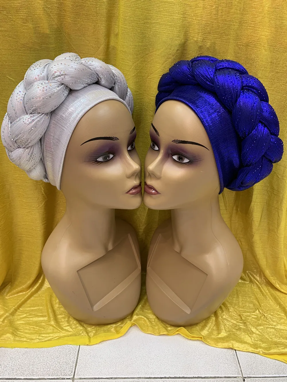 Красивый блестящий головной убор Aso Oke Gele уже изготовленный Auto Gele Aso Ebi головной убор Африканский тюрбан с камнями 12 шт.упак.